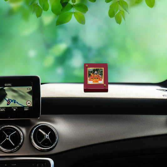 Diviniti 24K Gold Plated Foil Mata Ka Darbar Frame For Car Dashboard, Home Decor, Table Top, Puja and Gift (6.5 x 5.5 CM)
