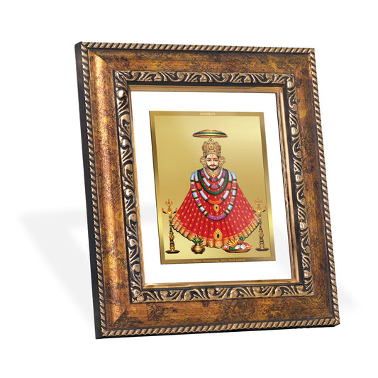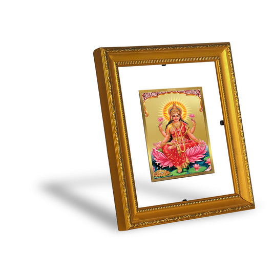 DIVINITI 24K Gold Plated Foil Laxmi Mata Photo Frame for Home & Office Decor, Table DG 103 Size 1 (15.3x14.9 CM)