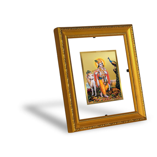 DIVINITI 24K Gold Plated Foil Krishna Wall Photo Frame Religious Photo Frame Idol for Home & Office Decor Prayer, Gifts Items DG 101 Size 1 (15.3x14.9 CM)