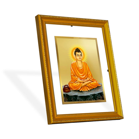 DIVINITI 24K Gold Plated Foil Lord Buddha Photo Frame Idol for Home Decor, Prayer, Workshop, Prayer, Gift|DG101 Size 2 (22.6x18.4 CM)