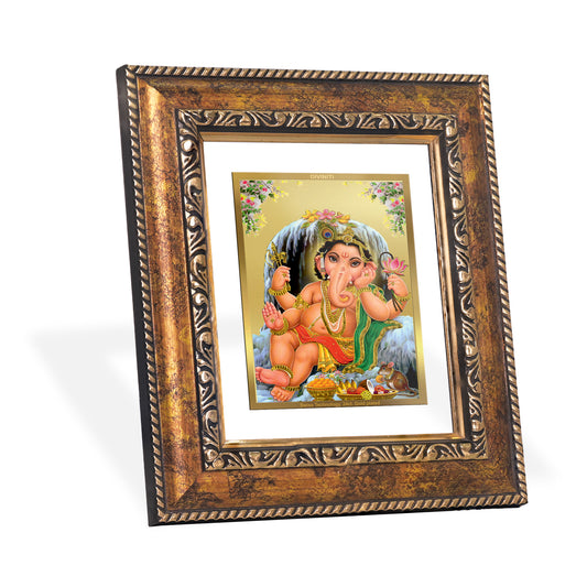 DIVINITI 24K Gold Plated Foil Bal Ganesha Wall Photo Frame Religious Photo Frame Idol for Home & Office Decor Prayer, Gifts Items DG 101 Size 1 (15.3x14.9 CM)