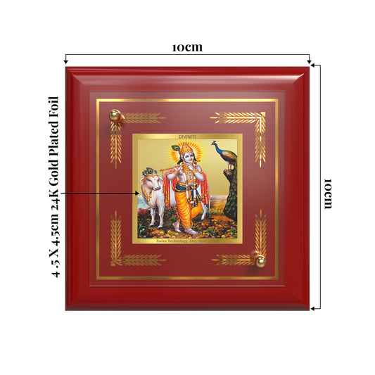 Lord Krishna with Surbhi Cow | Divine Tabletop Frame in 24K Gold Plated Foil