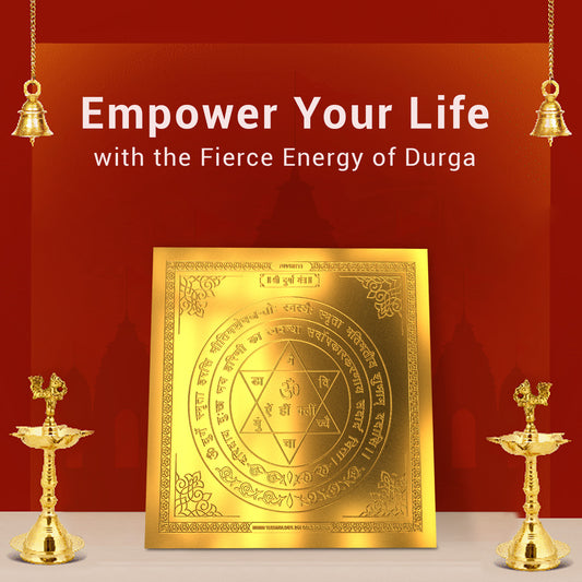 Diviniti 24K Gold Plated Goddess Durga Energized Yantra Perfect For Home, Office & Gift (15.5x15.5 CM)
