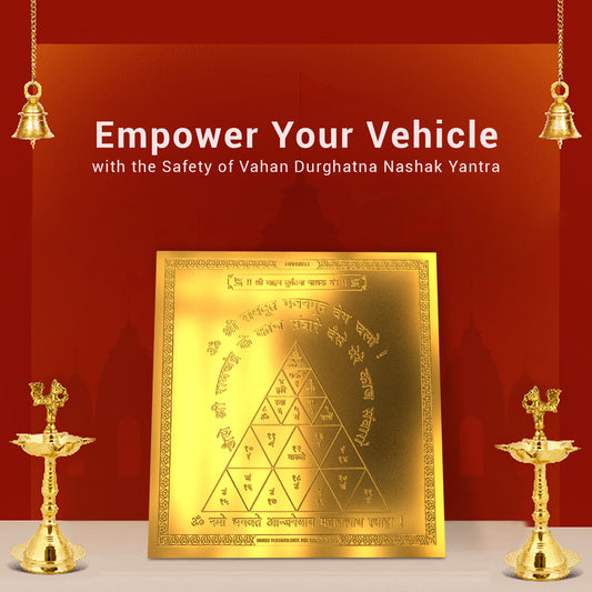 Diviniti 24K Gold Plated Vahan Durghatna Nashak Energized Yantra For Road Safety & Protection (15.5x15.5 CM)
