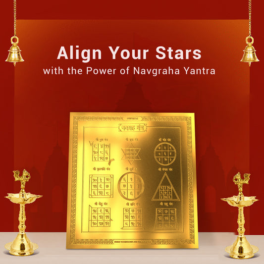 Diviniti 24K Gold Plated Navgraha Energized Yantra For Daily Worship & Meditation (15.5x15.5 CM)