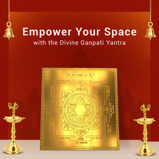 Diviniti 24K Gold Plated Ganapati Yantra Storage Siddh Energy For Home & Meditation (15.5x15.5 CM)