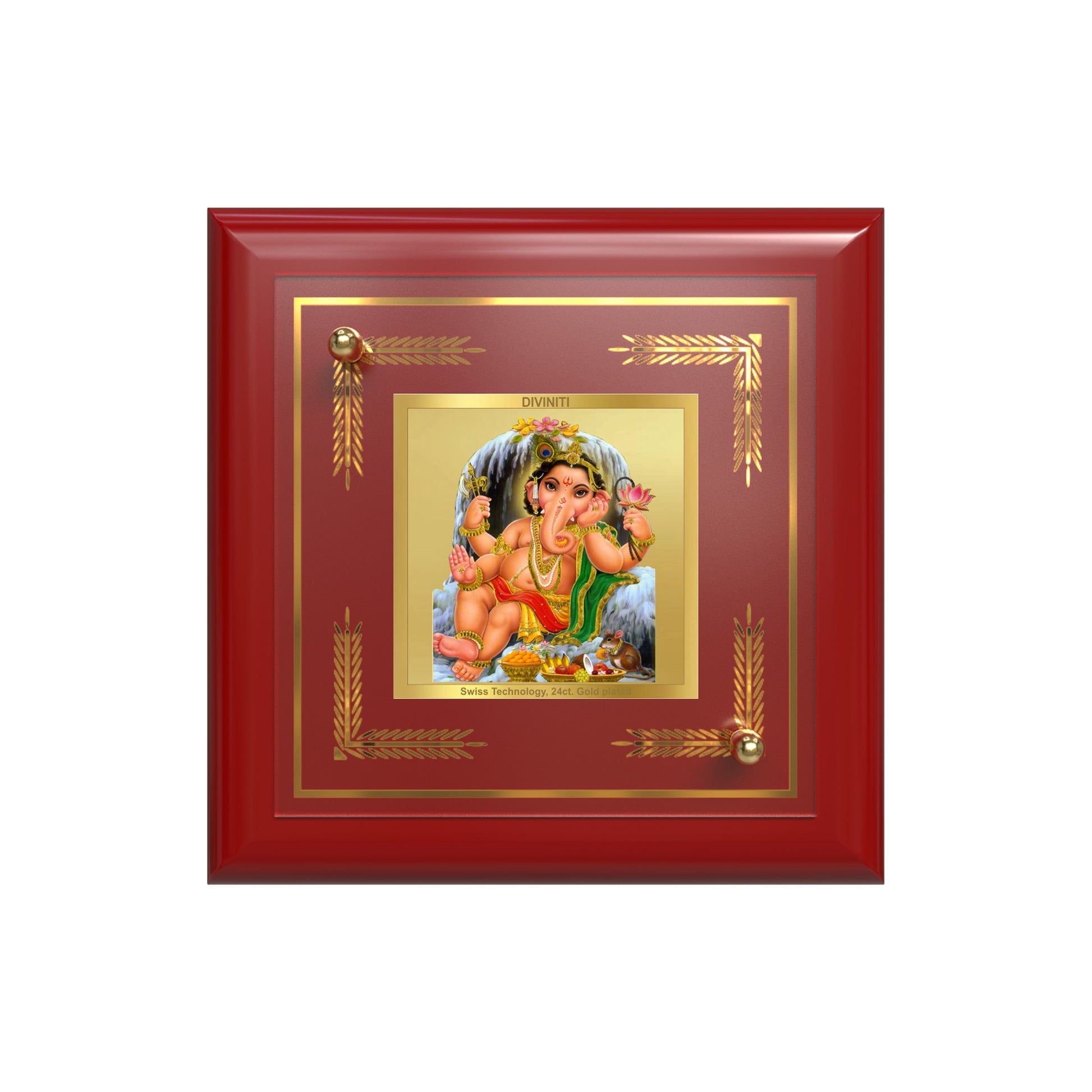 Embrace the blessings of Bal Ganesha, the playful and auspicious form of Lord Ganesha, with this beautifully crafted Lambodara Tabletop Frame, adorned in radiant 24K gold plated foil.