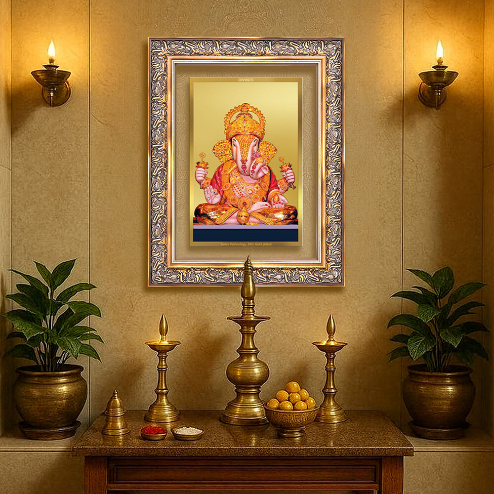 Dagdu Ganesh | Shri Dagdusheth Halwai Ganpati Wall Photo Frame in 24K Gold Plated Foil