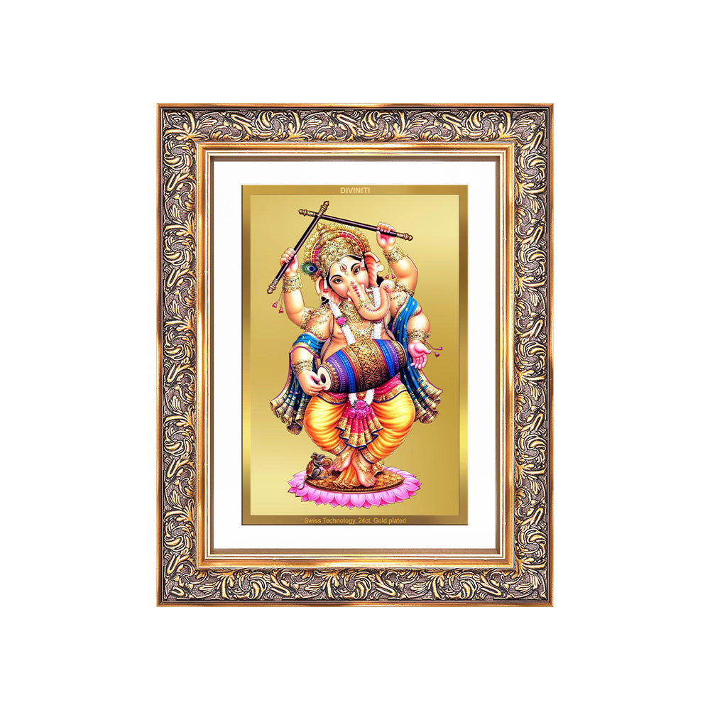 Dancing Ganesha on 24K Gold | Nritya Ganapati Wall Photo Frame in 24K Gold Plated Foil
