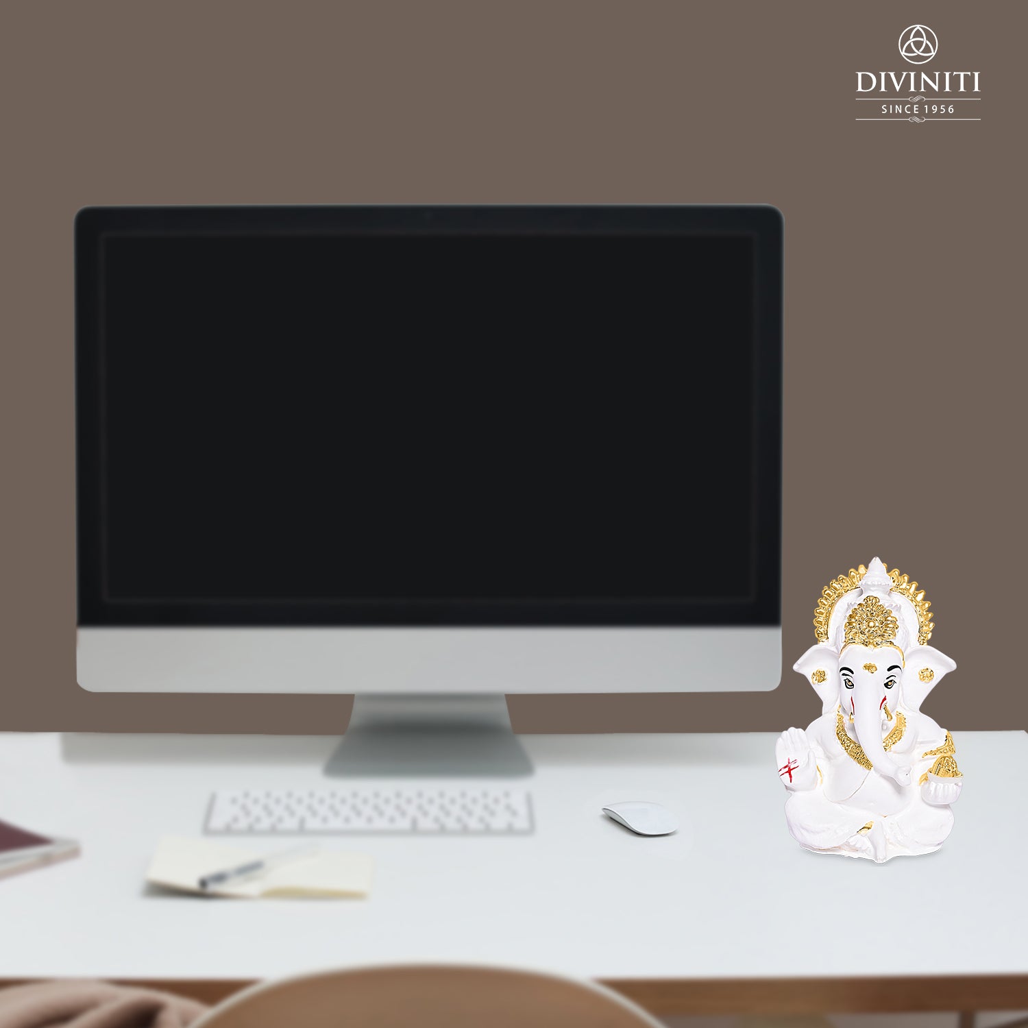 Diviniti 24K Gold Plated Resin Lord Ganesha Idol White