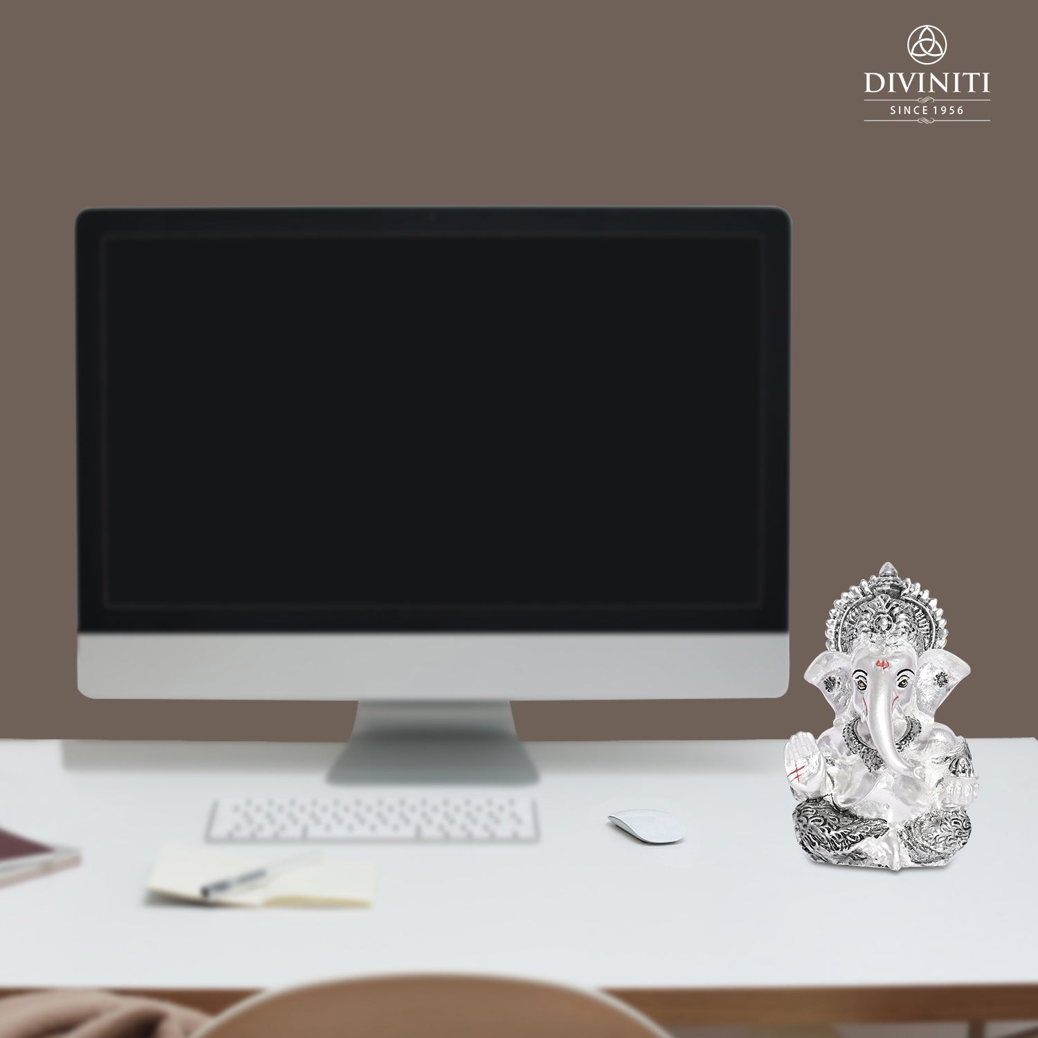 Diviniti 999 Silver Plated Resin Lord Ganesha Idol Silver