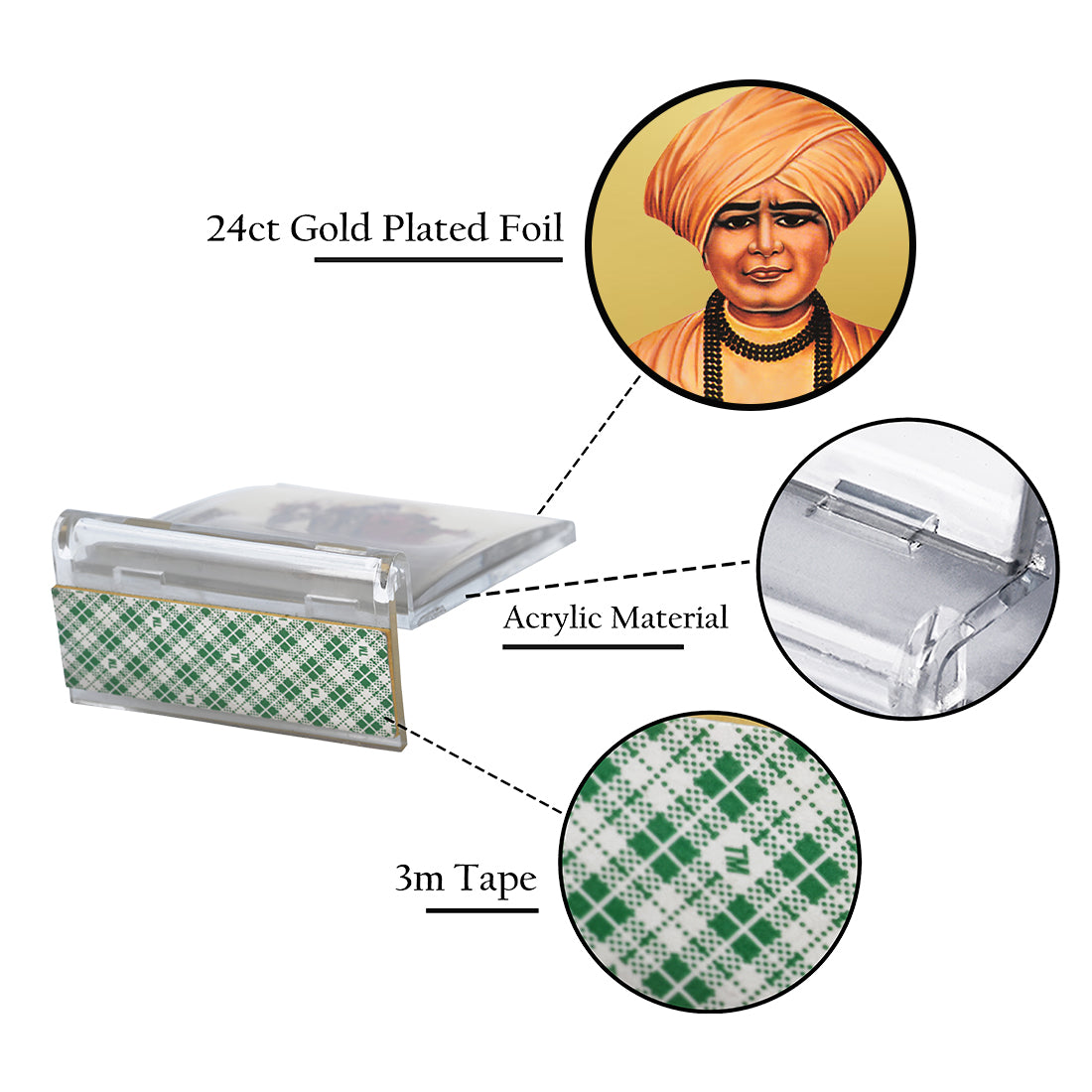 This Jalaram Bapa frame serves as an exquisite addition to your car dashboard, home, table, office, shop or showroom. You can also use it in your Puja Prayer room to create a serene and sacred atmosphere. Made from acrylic material and adorned with 24K gold-plated foil, this divine frame is crafted to withstand the test of time, ensuring long-lasting spark and durability.