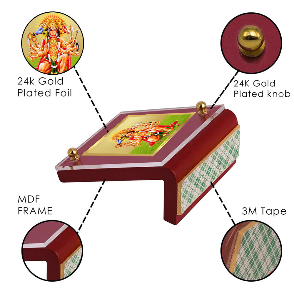 Diviniti 24K Gold Plated Lord Panchmukhi Hanuman Car Dashboard Frame