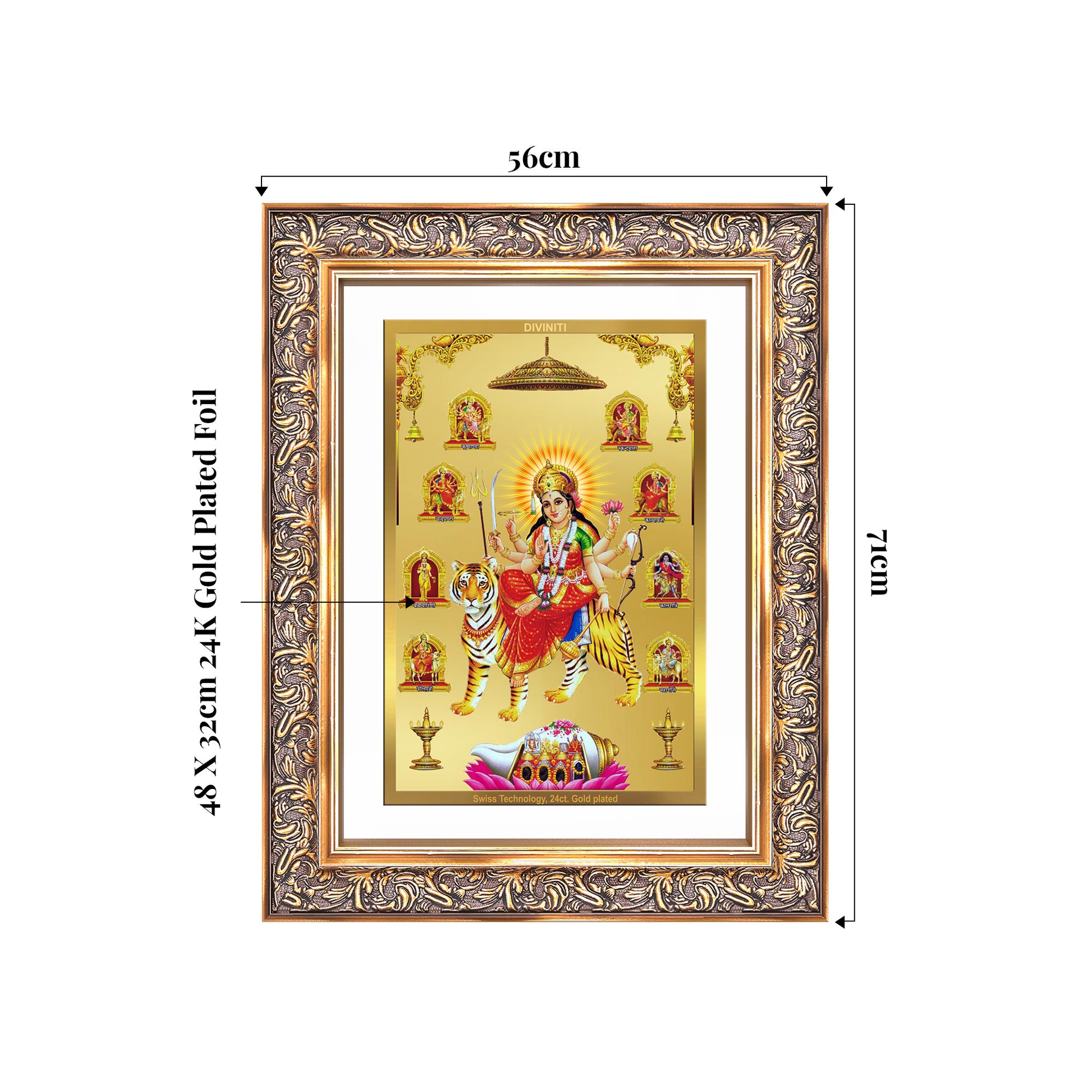 Durga Nav Durga | Goddess Durga in Her Nine Divine forms Wall Mount Photo Frame in 24K Gold Plated Foil