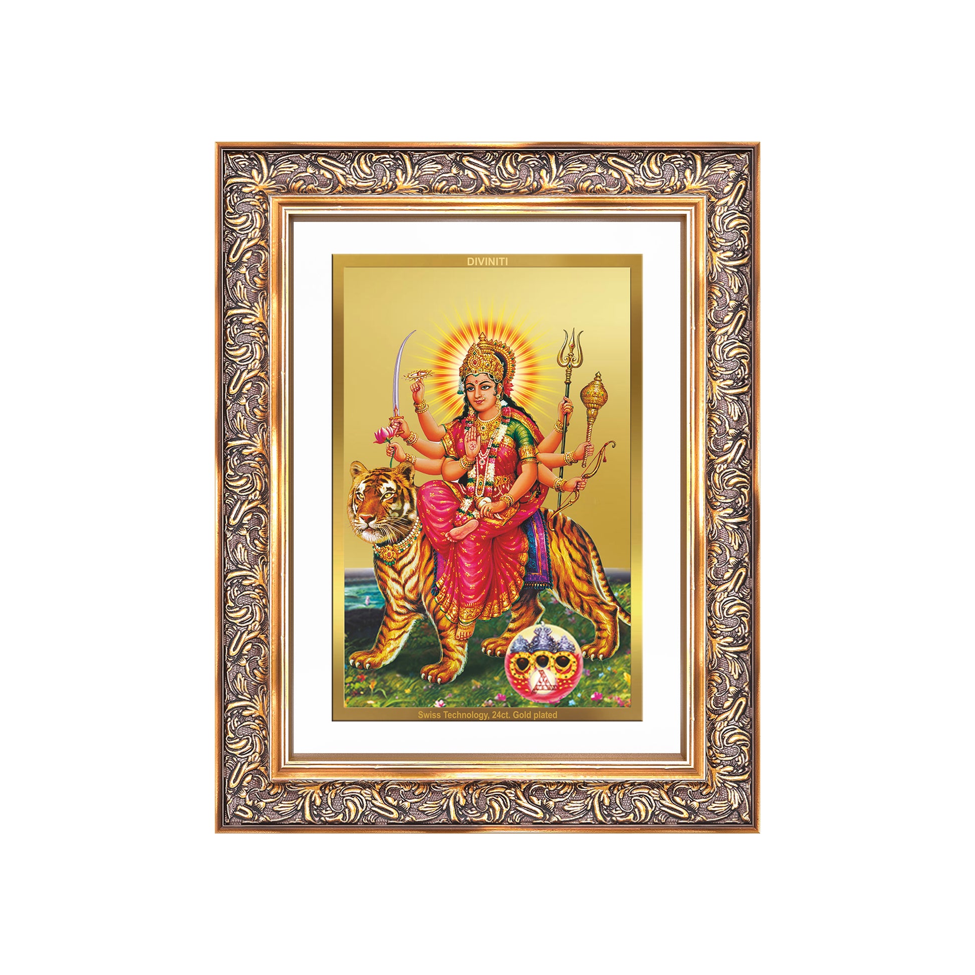 Durga Sherawali Mata with Pind | Divine Wall Mount Photo Frame in 24K Gold Plated Foil