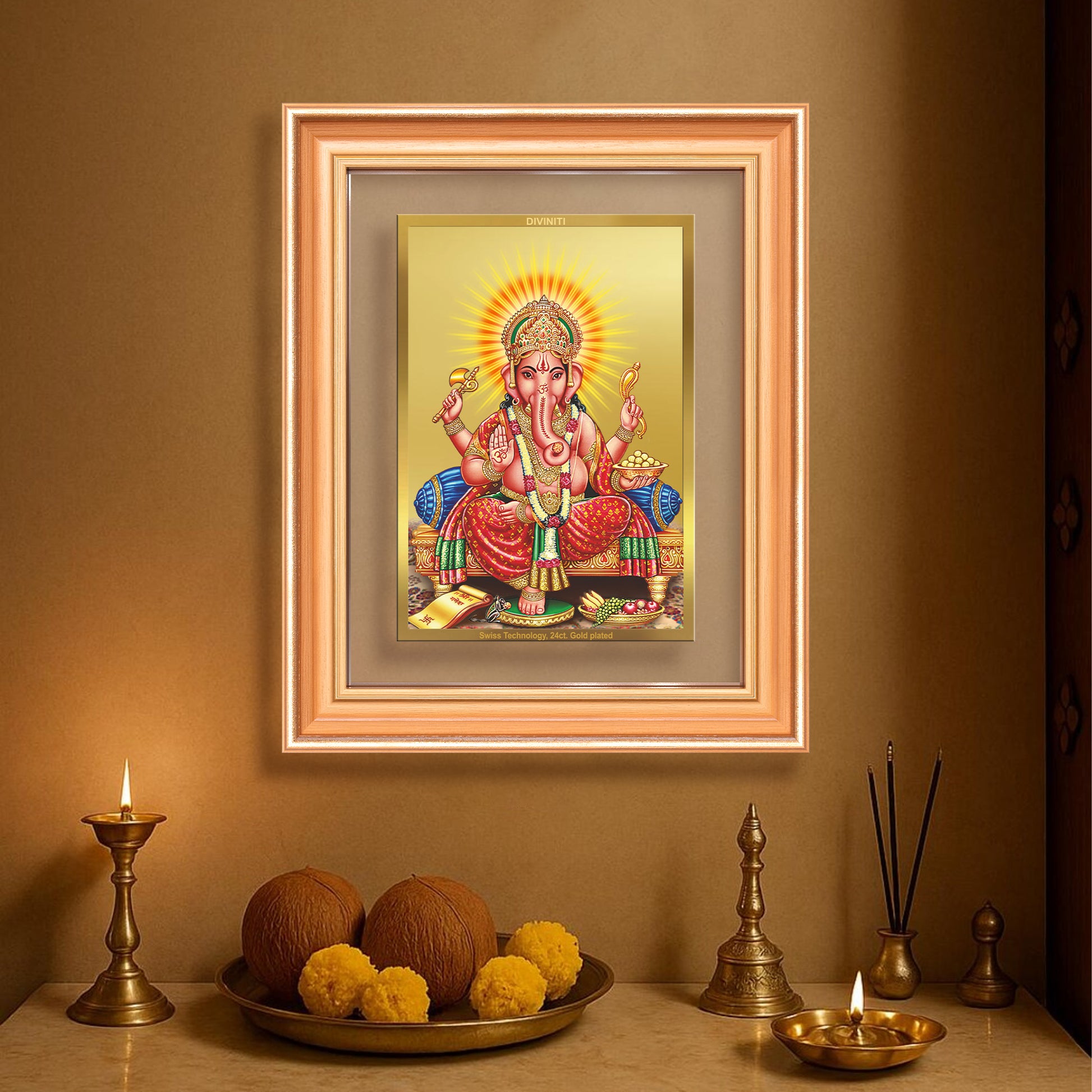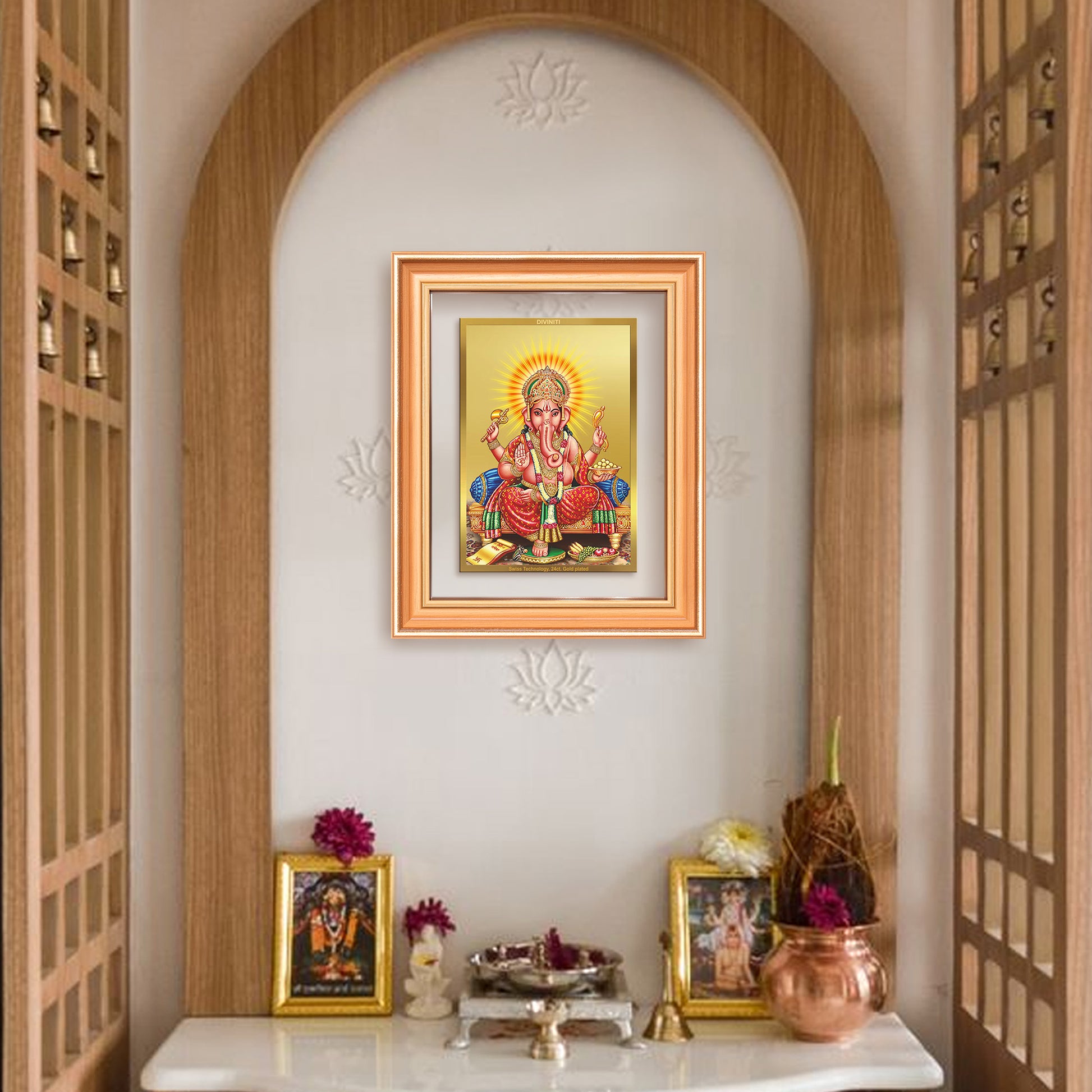 Invoke the divine presence of Lord Ganesha, the remover of obstacles and the god of wisdom and auspicious beginnings, with this beautifully crafted Wall Mount Photo Frame in 24K gold-plated foil. Revered as Vighnaharta and the harbinger of prosperity, Lord Ganpati’s blessings are invoked at the start of every sacred occasion and new venture.