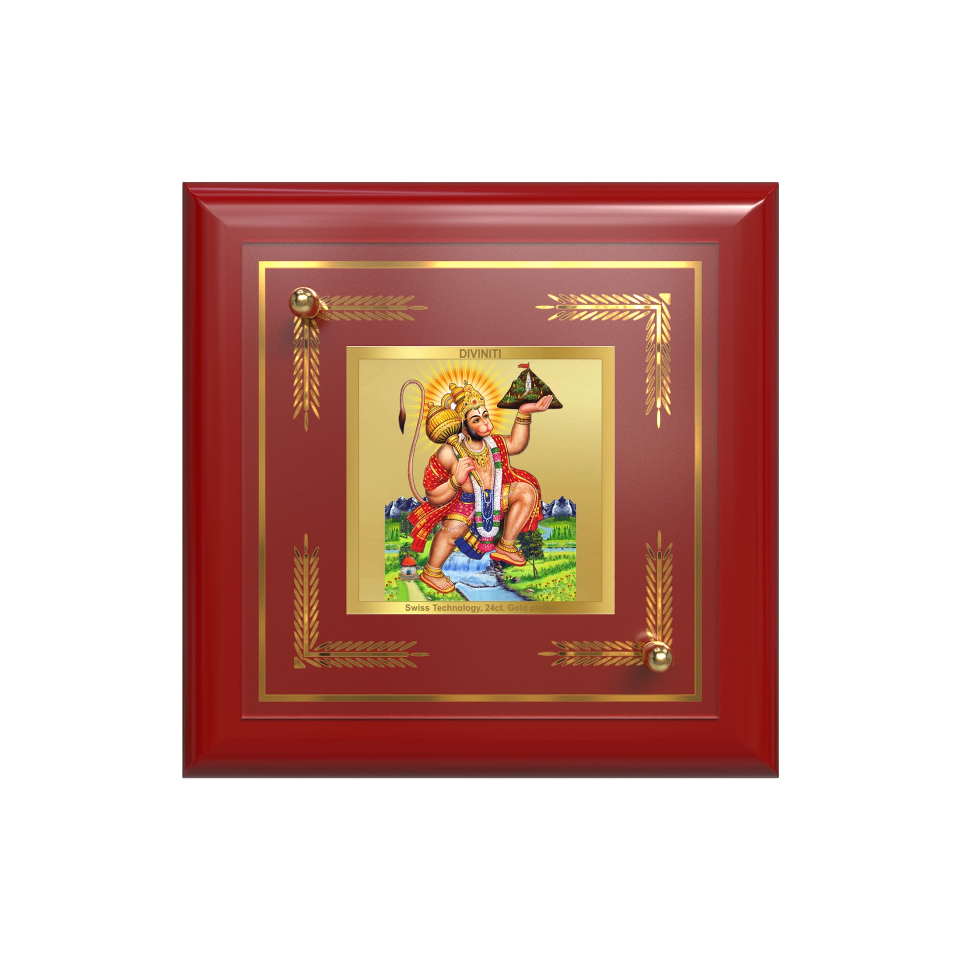 Crafted with precision using advanced Swiss embossing technology, the frame captures every intricate detail from Hanuman's dynamic posture to the majestic mountain held high in the sky.