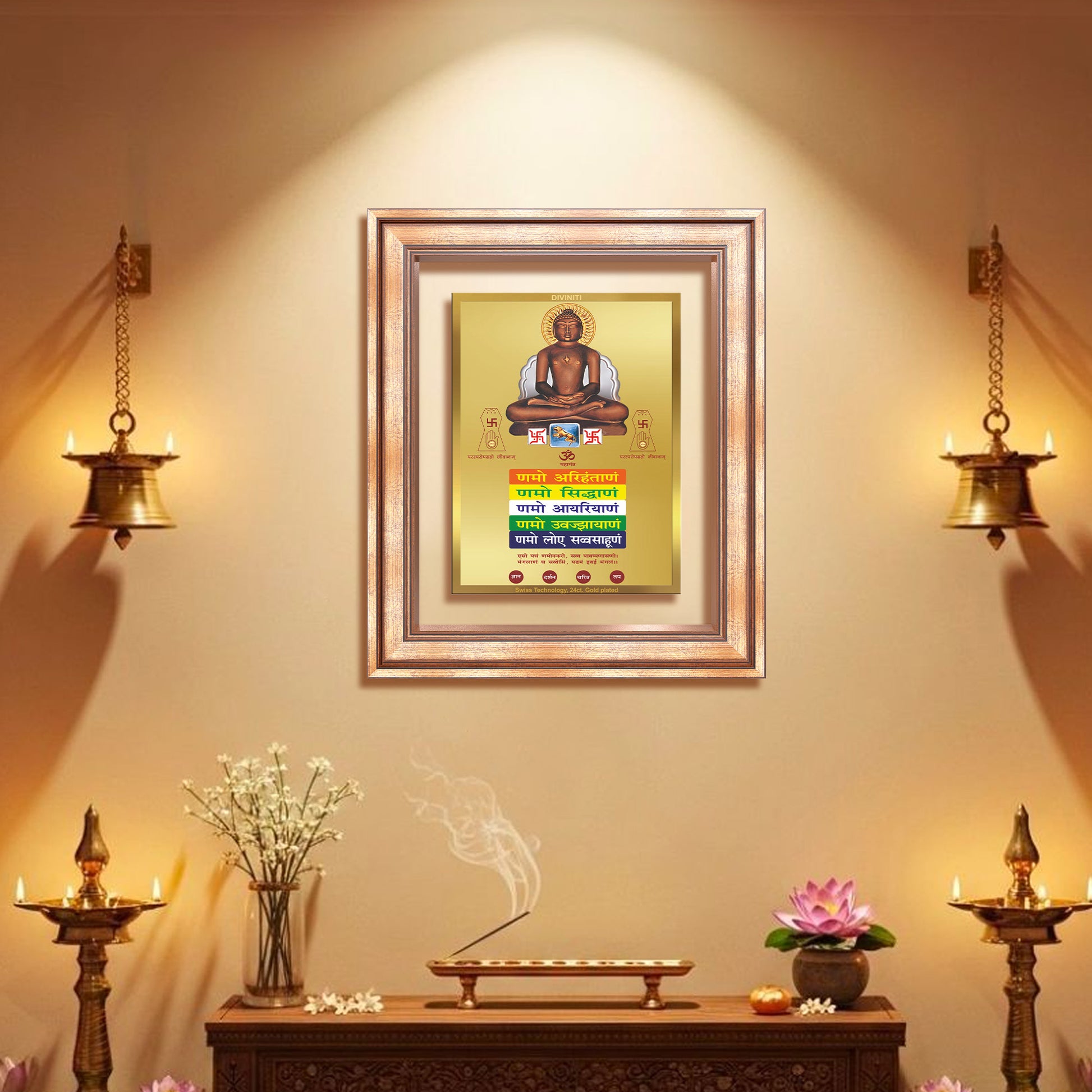 Lord Mahavira with Namokar Mantra | Jain Tirthankara Wall Mount Photo Frame in 24K Gold Plated Foil