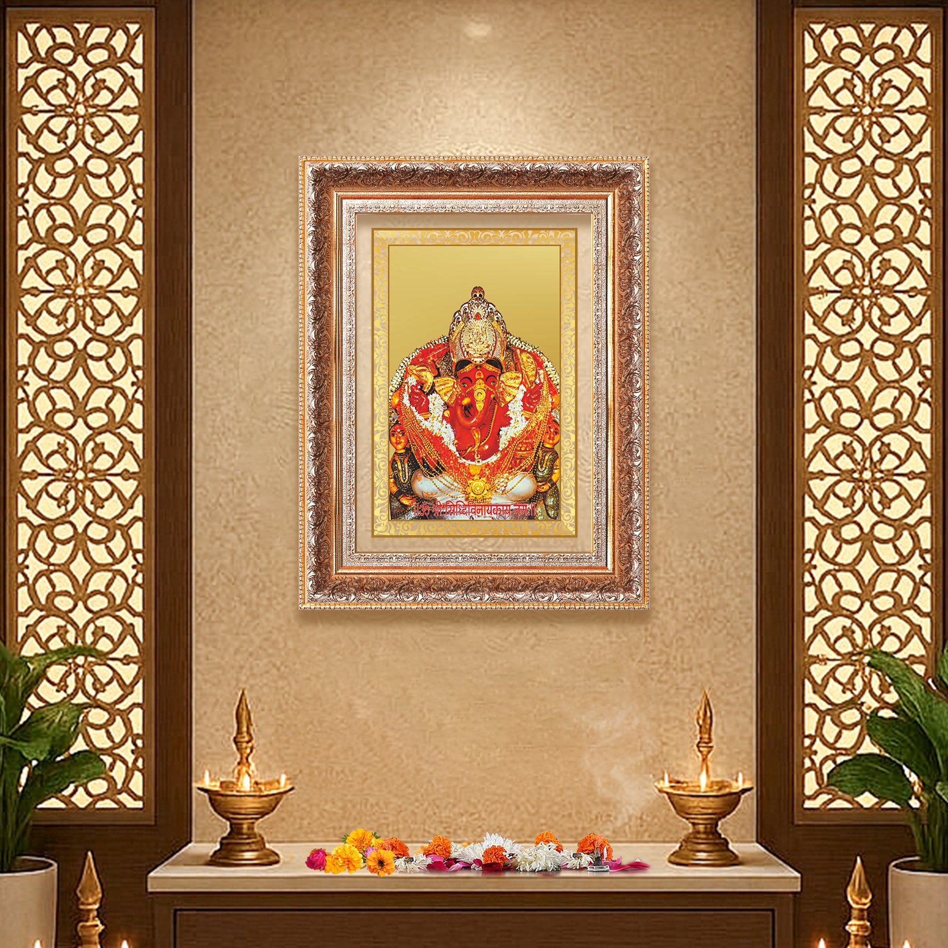 Invoke the divine blessings of Lord Siddhivinayak, the revered form of Lord Ganesha worshipped as the bestower of success and remover of obstacles, with this exquisitely crafted Wall Photo Frame in 24K gold-plated foil. Housed in the famous Shree Siddhivinayak Temple in Mumbai, this form of Ganpati is known for granting wishes and ensuring auspicious beginnings for devotees across the world.