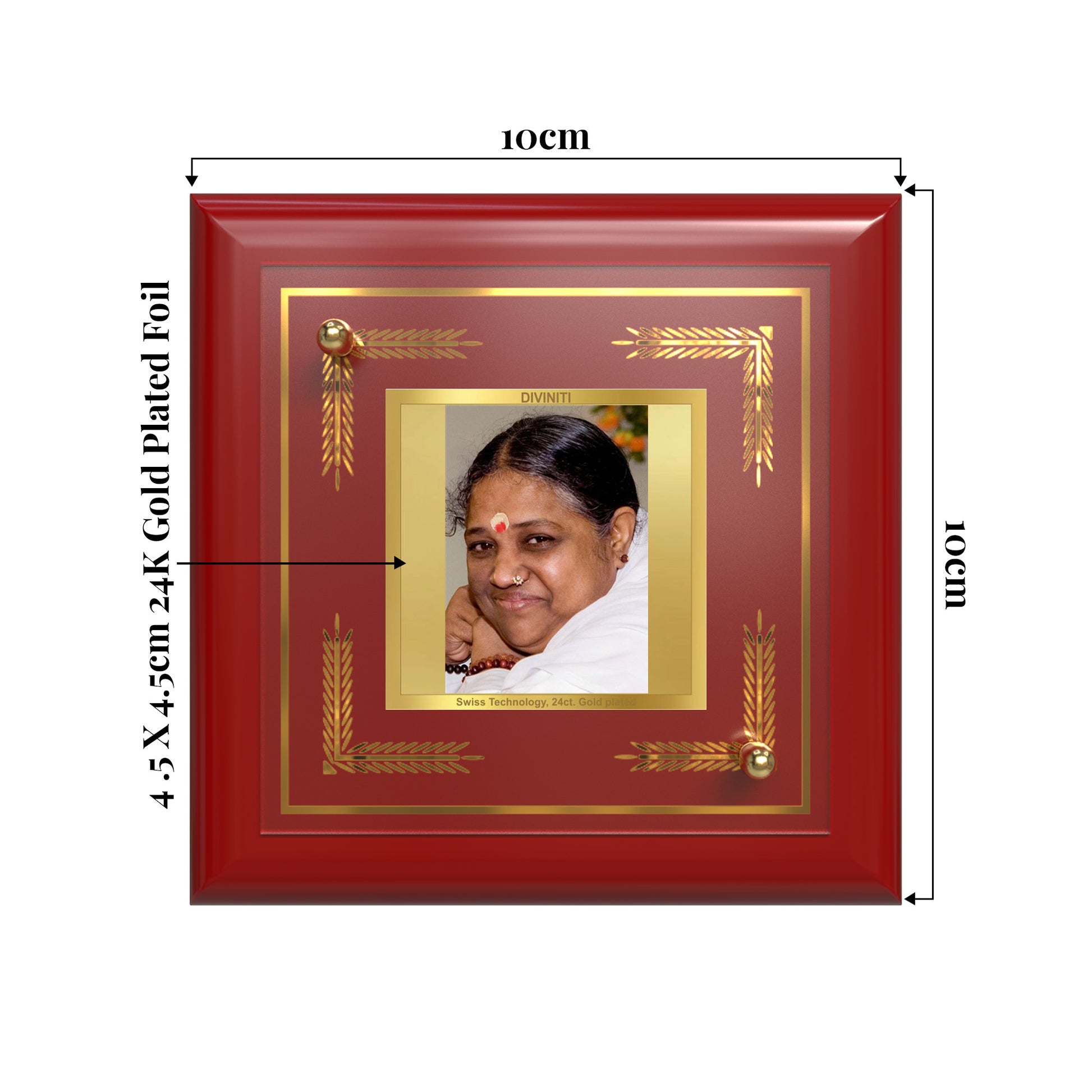 Invite the divine presence of Sri Mata Amritanandamayi also revered as Amma, the embodiment of universal love and compassion, into your daily journey with this beautifully designed Tabletop Frame, adorned in radiant 24K gold plated foil. Known worldwide as the 'Hugging Saint', Amma’s serene presence inspires peace, healing, and unconditional love. This elegant frame blends spiritual grace with premium craftsmanship, making it ideal for your car, workspace, or sacred altar.