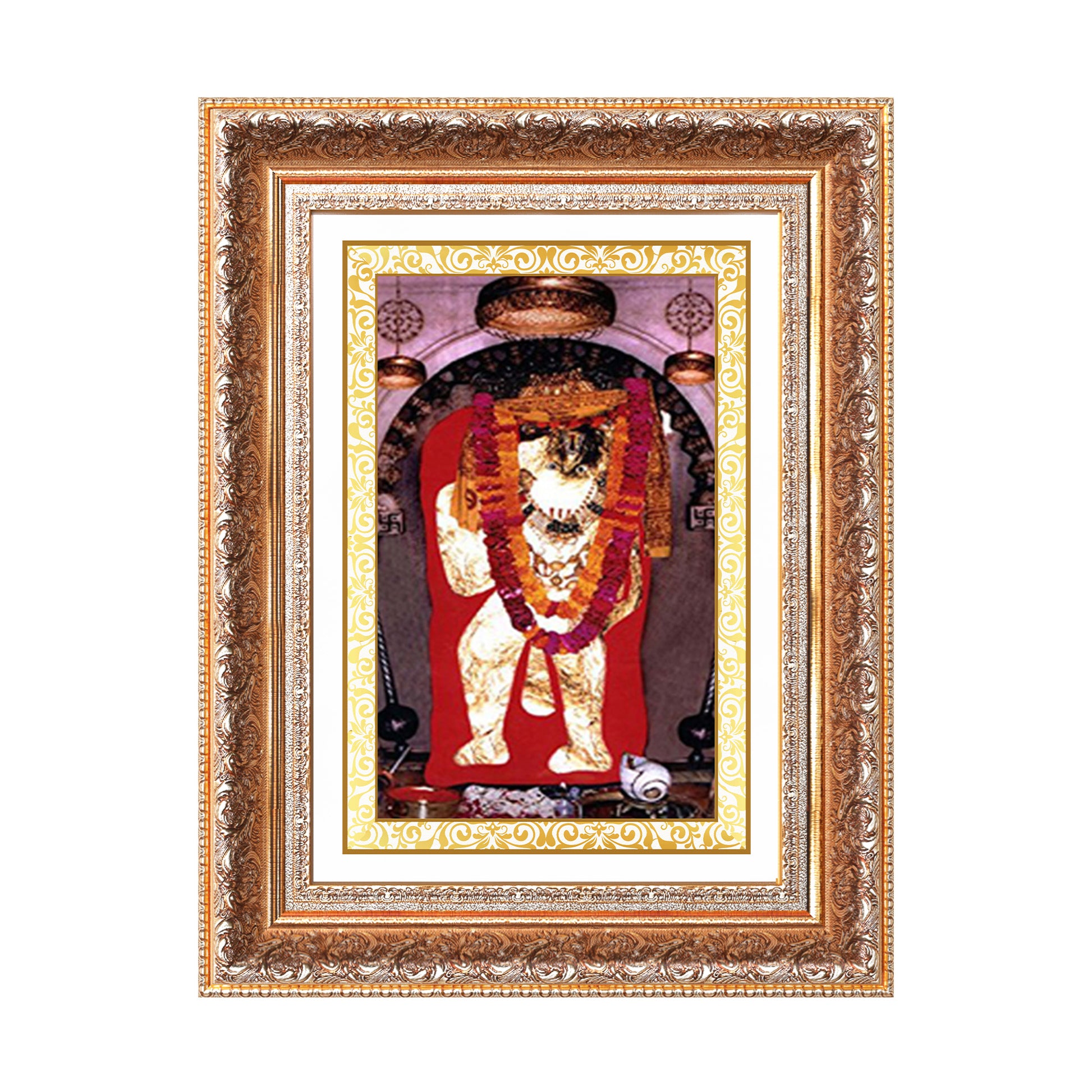 Invoke the powerful presence of Mehandipur Balaji, the revered form of Lord Hanuman known for divine protection, healing, and deliverance from negative energies, with this exquisitely crafted 24K gold-plated foil Wall Photo Frame. Worshipped at the sacred Mehandipur Balaji Temple in Rajasthan, this unique form of Hanuman is venerated for his miraculous powers and unwavering spiritual strength.