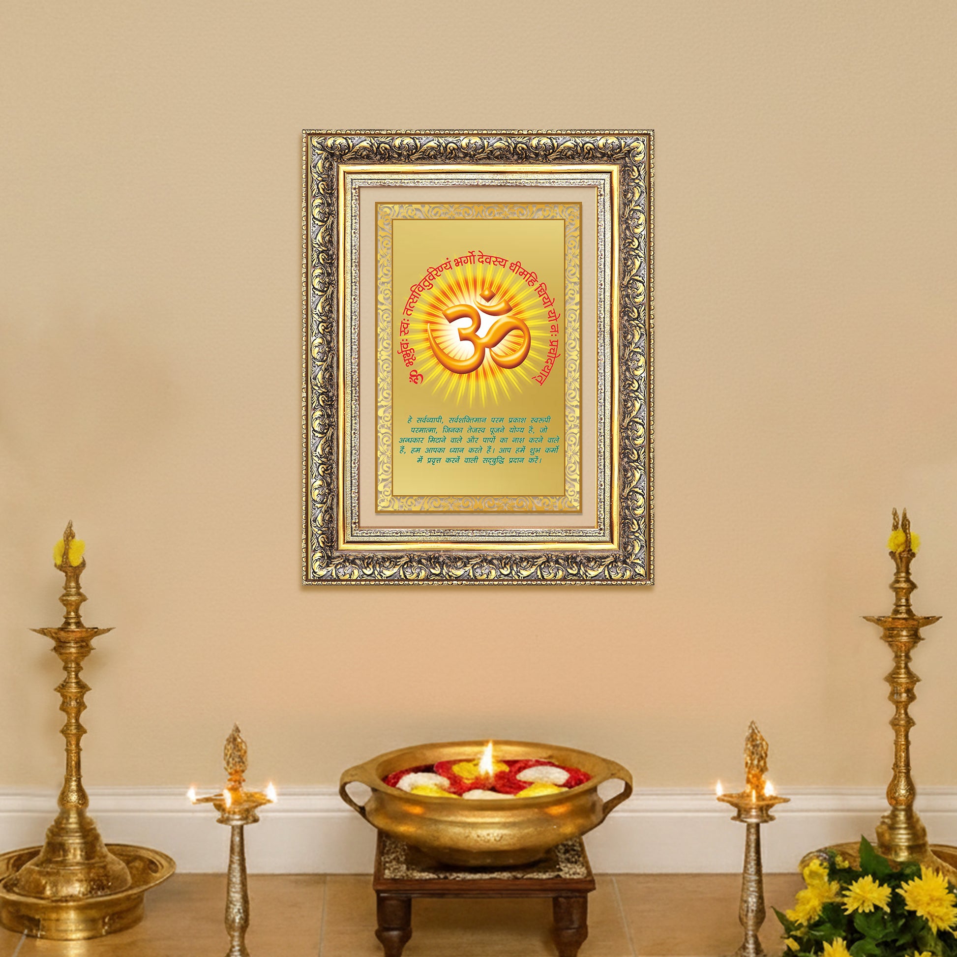 Om with Gayatri Mantra | Sacred Vibration & Vedic Wisdom Wall Photo Frame in 24K Gold Plated Foil
