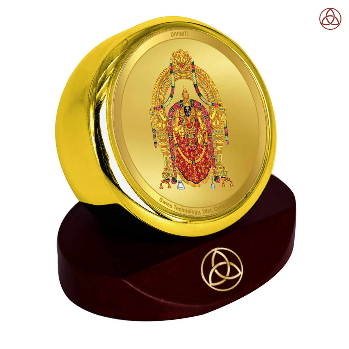 Invite the divine blessings of Goddess Padmavathi, the consort of Lord Venkateshwara (Tirupati Balaji), with this exquisite Padmavathi Car Dashboard & Tabletop Photo Frame in radiant 24K gold-plated foil. Known for her grace, beauty, and compassion, Goddess Padmavathi symbolizes prosperity, love, and spiritual wealth.