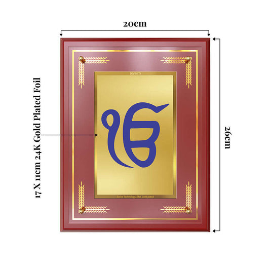 DIVINITI 24K Gold Plated Foil Ik Onkar Wall Photo Frame, Table Decor for Home & Office Decor Gift Items DG 113 Size 1 (17.7x15.9 CM)