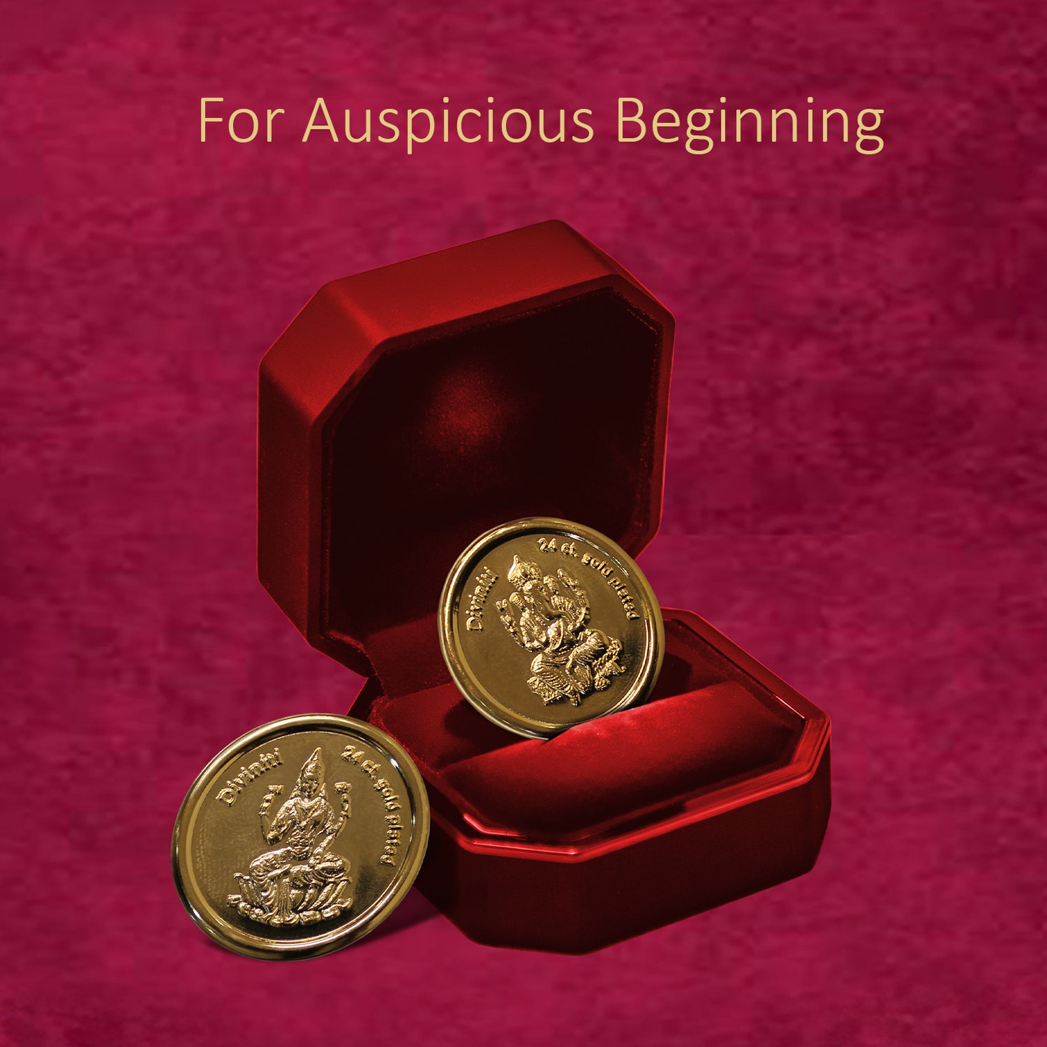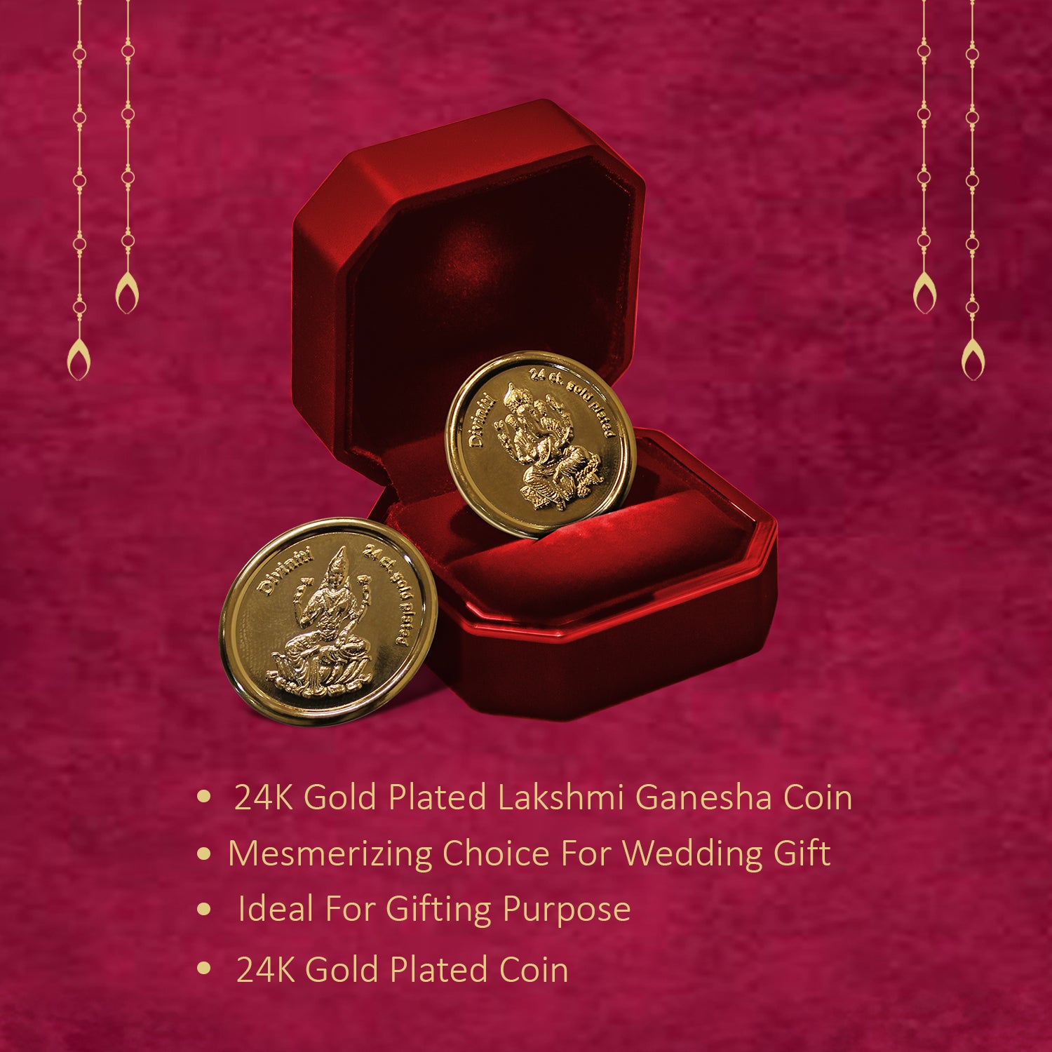 The radiant gold plating accentuates the intricate details of Goddess Laxmi and Lord Ganesha, symbolizing wealth, fortune, and auspicious beginnings. This coin transcends material value; it becomes a conduit for bestowing blessings upon the recipient. Whether exchanged during weddings, festivals, or auspicious ceremonies, this gold-plated coin carries with it the promise of divine prosperity.