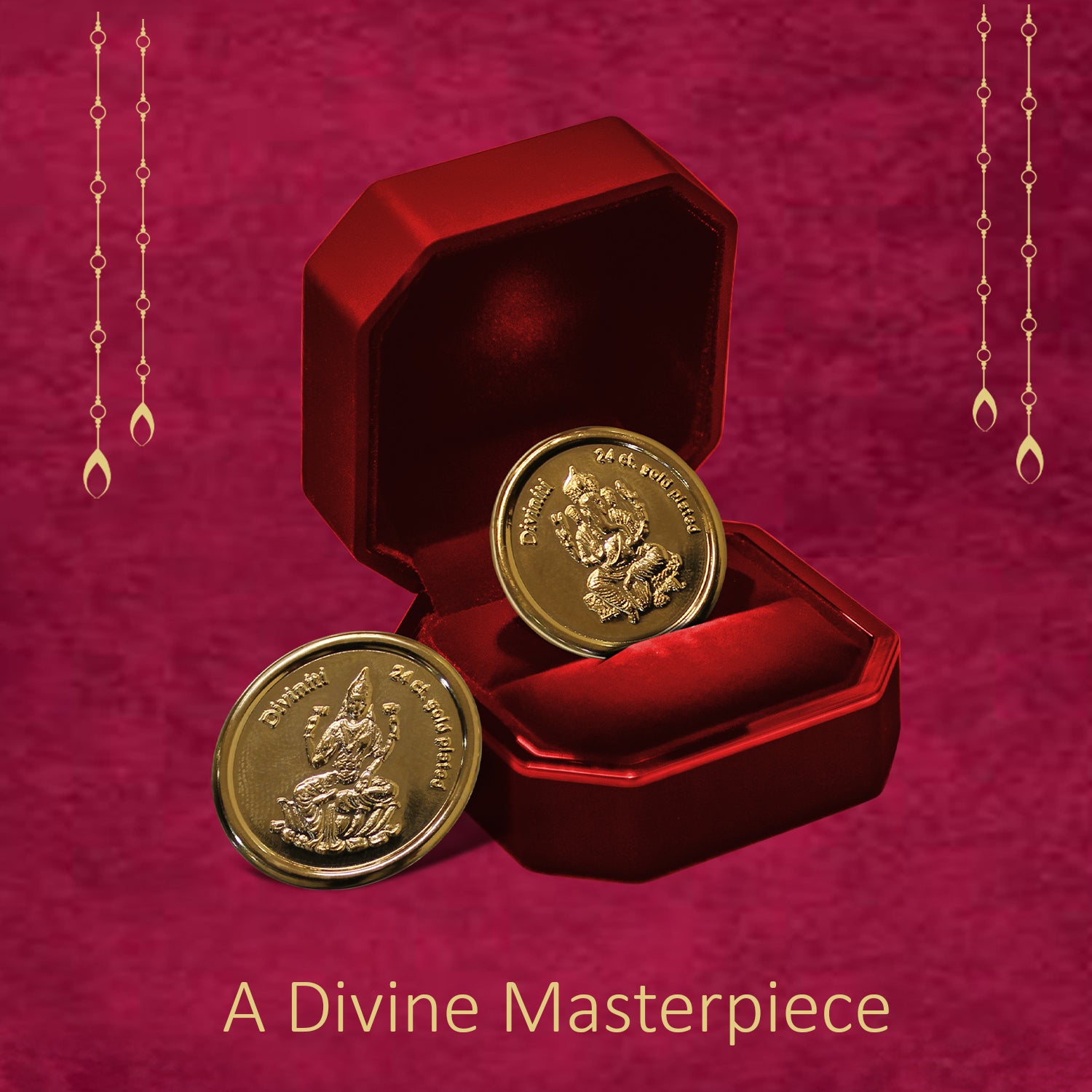 DIVINITI 24K Gold Plated Lakshmi Ganesha Coin