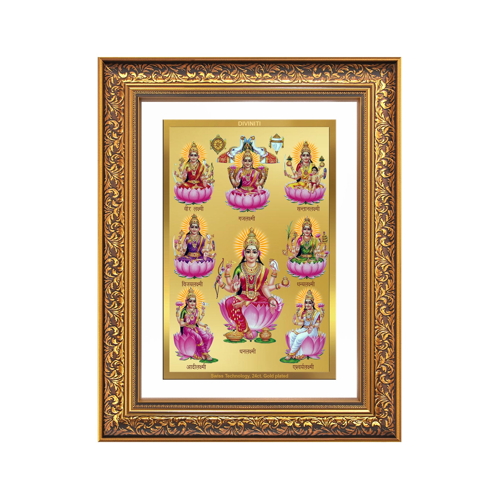Ashtalakshmi | Lakshmi Devi for Wall Mount Photo Frame in 24K Gold Plated Foil