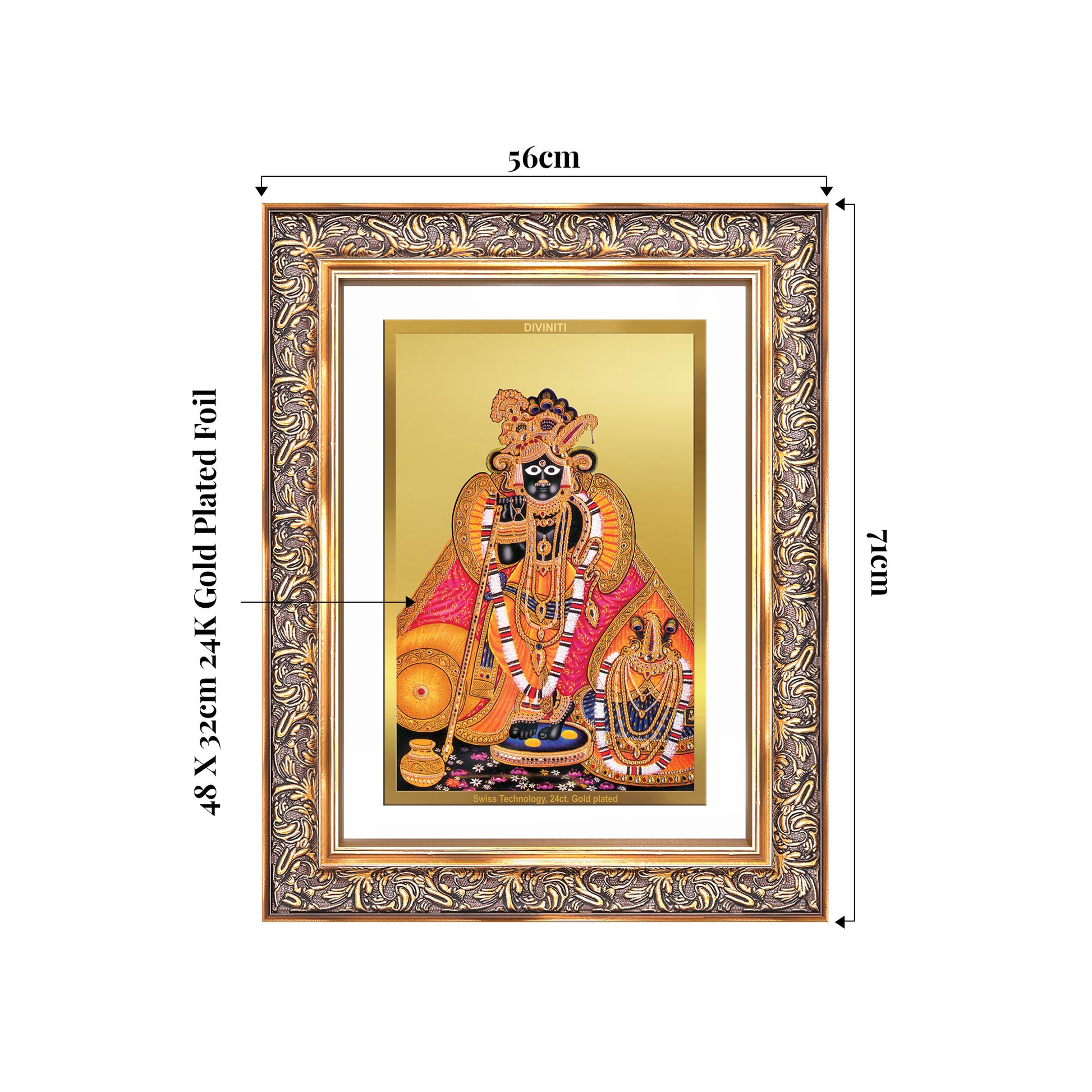 Invoke the divine charm and blessings of Banke Bihari, the beloved form of Lord Krishna, with this elegant Kunjbihari Wall Mount Photo Frame crafted on 24K gold-plated foil. This beautiful artwork captures Lord Krishna in his playful, enchanting form, symbolizing divine love, joy, and the transcendence of all worldly boundaries.