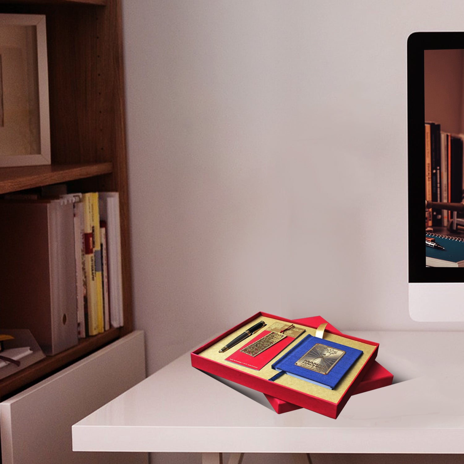 This combo is a fusion of sophistication and functionality, designed to leave a lasting impression on university students. This combo features a premium steel pen, an exquisite note book, and a bookmark with 24K gold-plated branding, turning ordinary essentials into symbols of luxury and success. Elevate your university collection with this exclusive combo that redefines elegance and celebrates success. It's not just a gift; it's a representation of the luxury and sophistication that your university stands for.