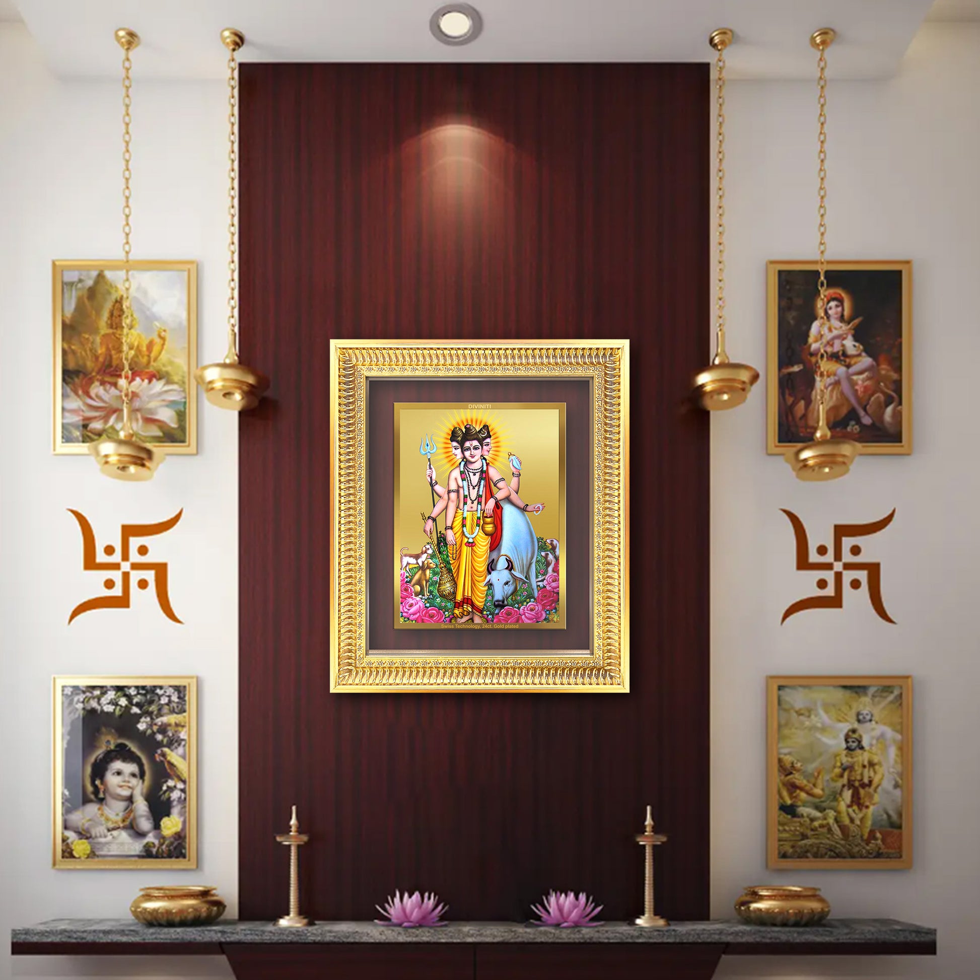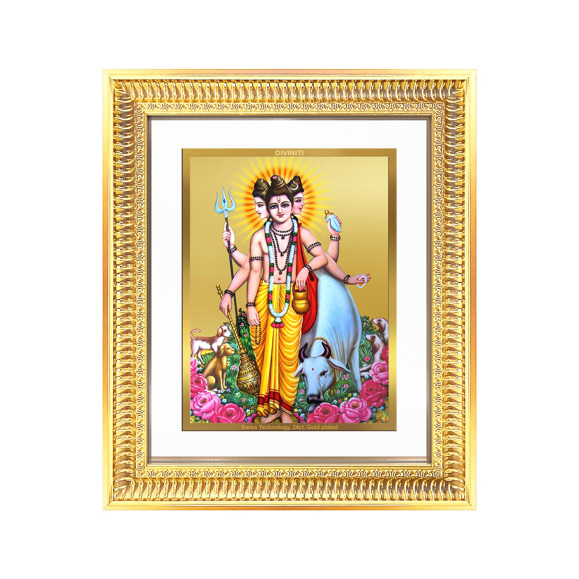 Dattatreya with Kamadhenu | Shri Dattatreya Wall Mount Photo Frame in 24K Gold Plated Foil