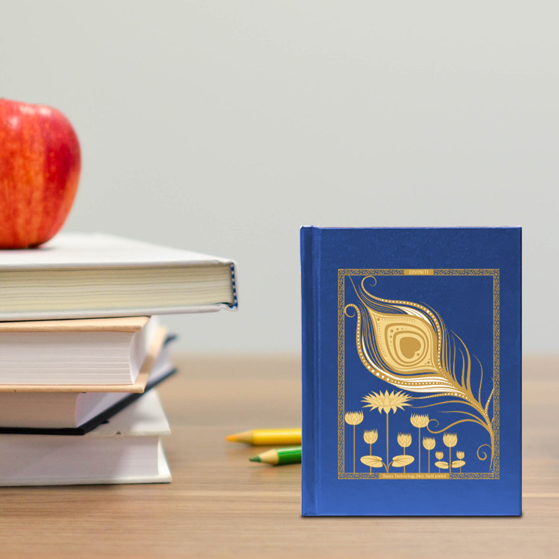 DIVINITI 24K Gold Plated Feather Notebook | Religious Diary Hardcover 17 x 13.5 cm | Journal Diary for Work, Travel, College |A Journal to Inspire and Empower Your Life| 100 Pages Blue Color