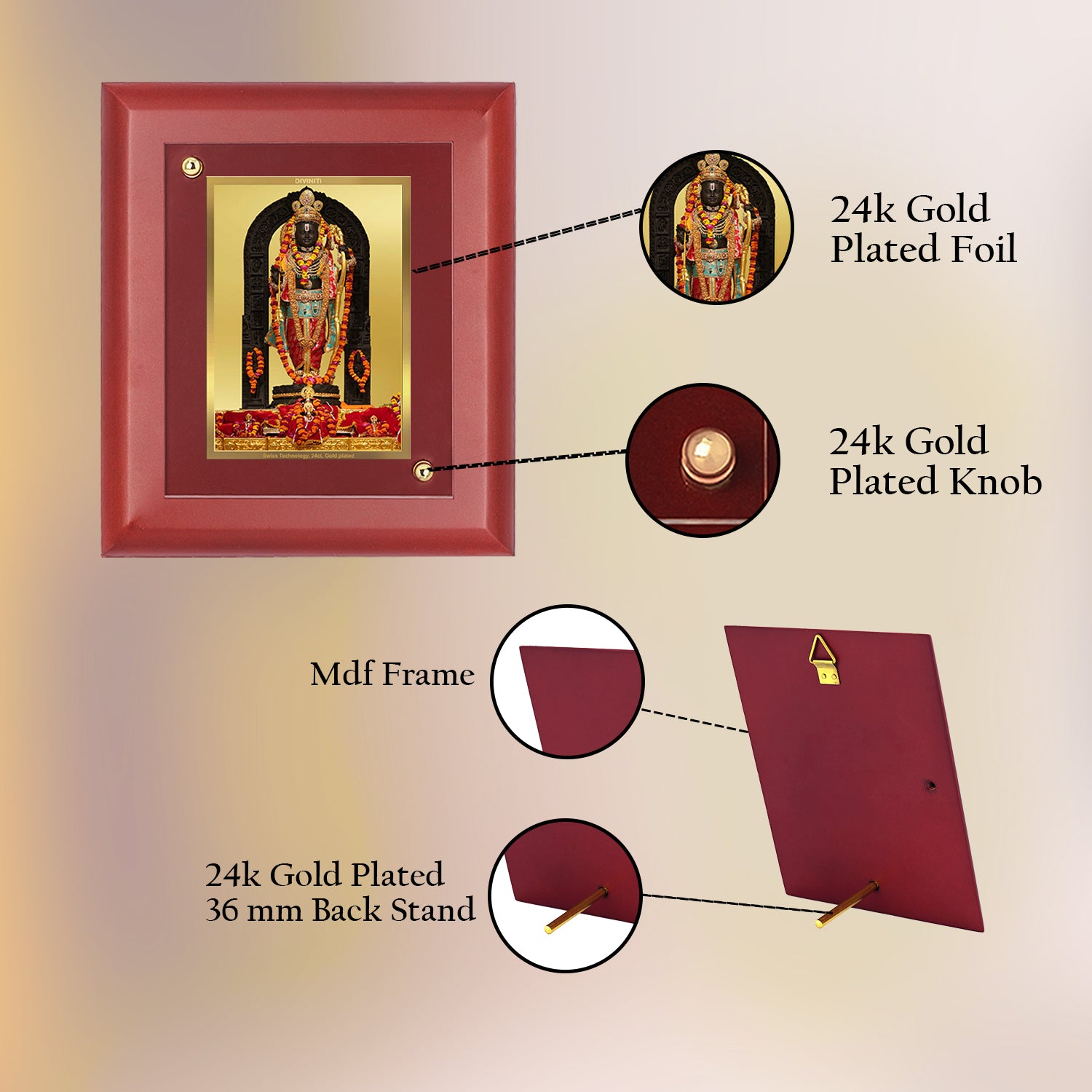 Thoughtfully designed for gifting, this divine photo frame is a timeless present and can be gifted to your family, friends, relatives and loved ones on special occasions and festivals. Elevate your surroundings with the charm of MDF Photo Frame, a delightful addition to any home or office. Simply place it on your table, and you're ready to infuse your space with spiritual vibes.