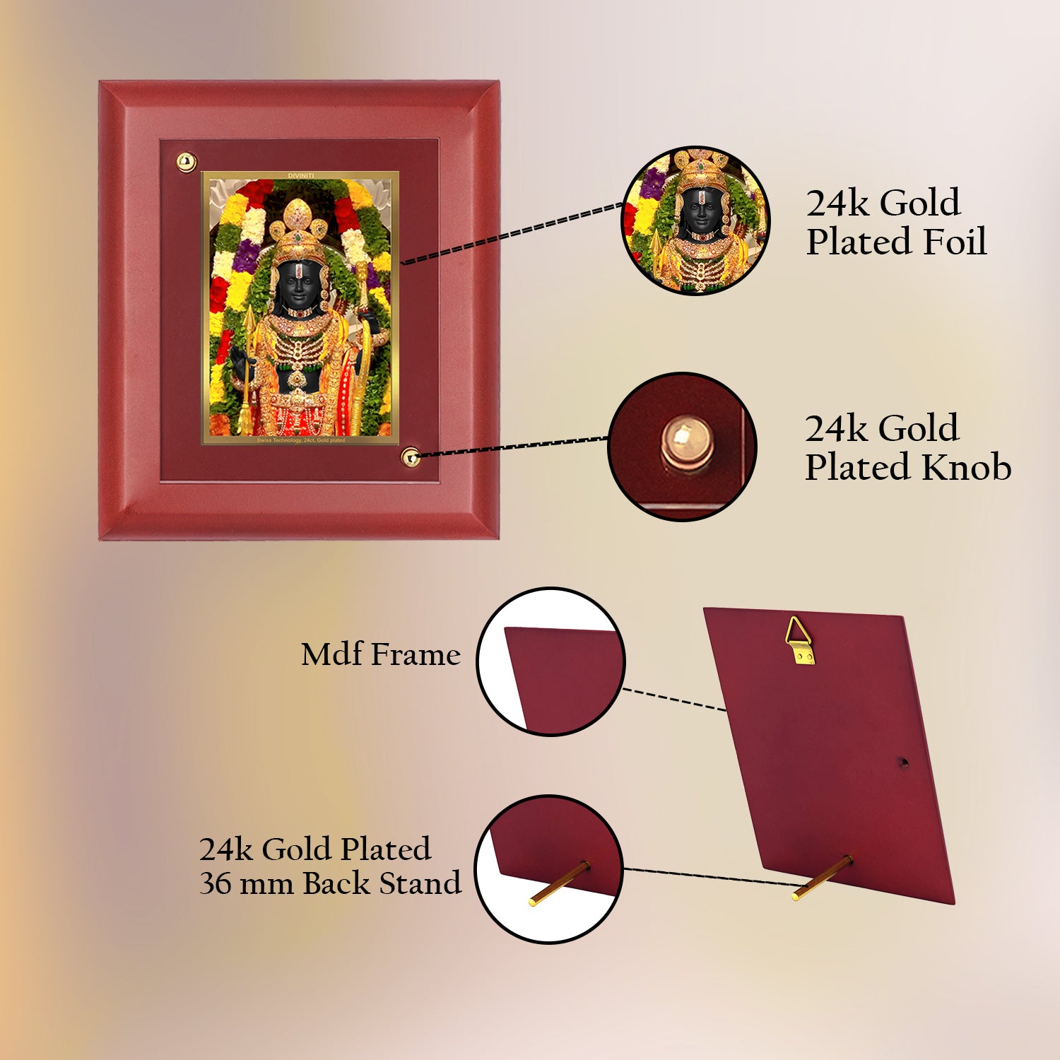 Thoughtfully designed for gifting, this divine photo frame is a timeless present and can be gifted to your family, friends, relatives and loved ones on special occasions and festivals. Elevate your surroundings with the charm of MDF Photo Frame, a delightful addition to any home or office. Simply place it on your table, and you're ready to infuse your space with spiritual vibes.