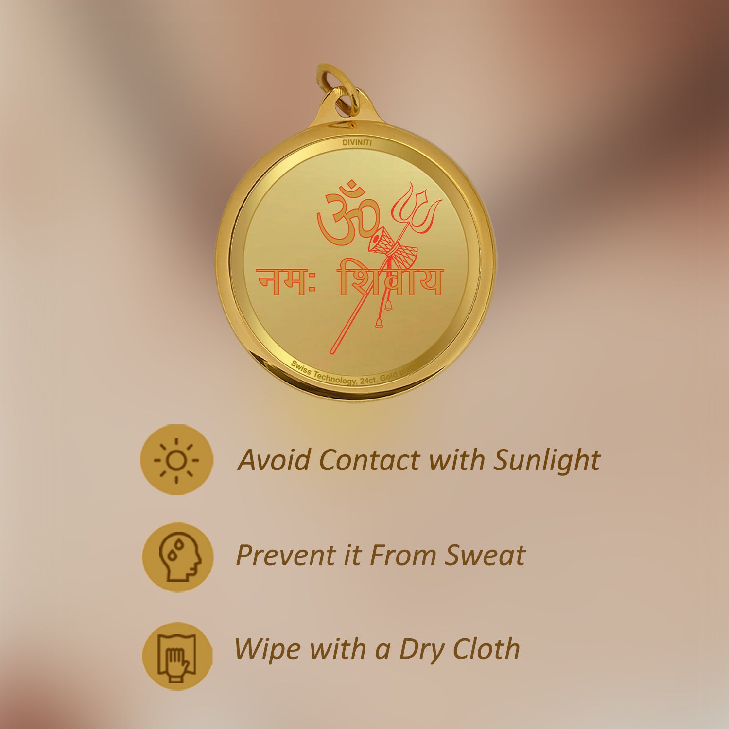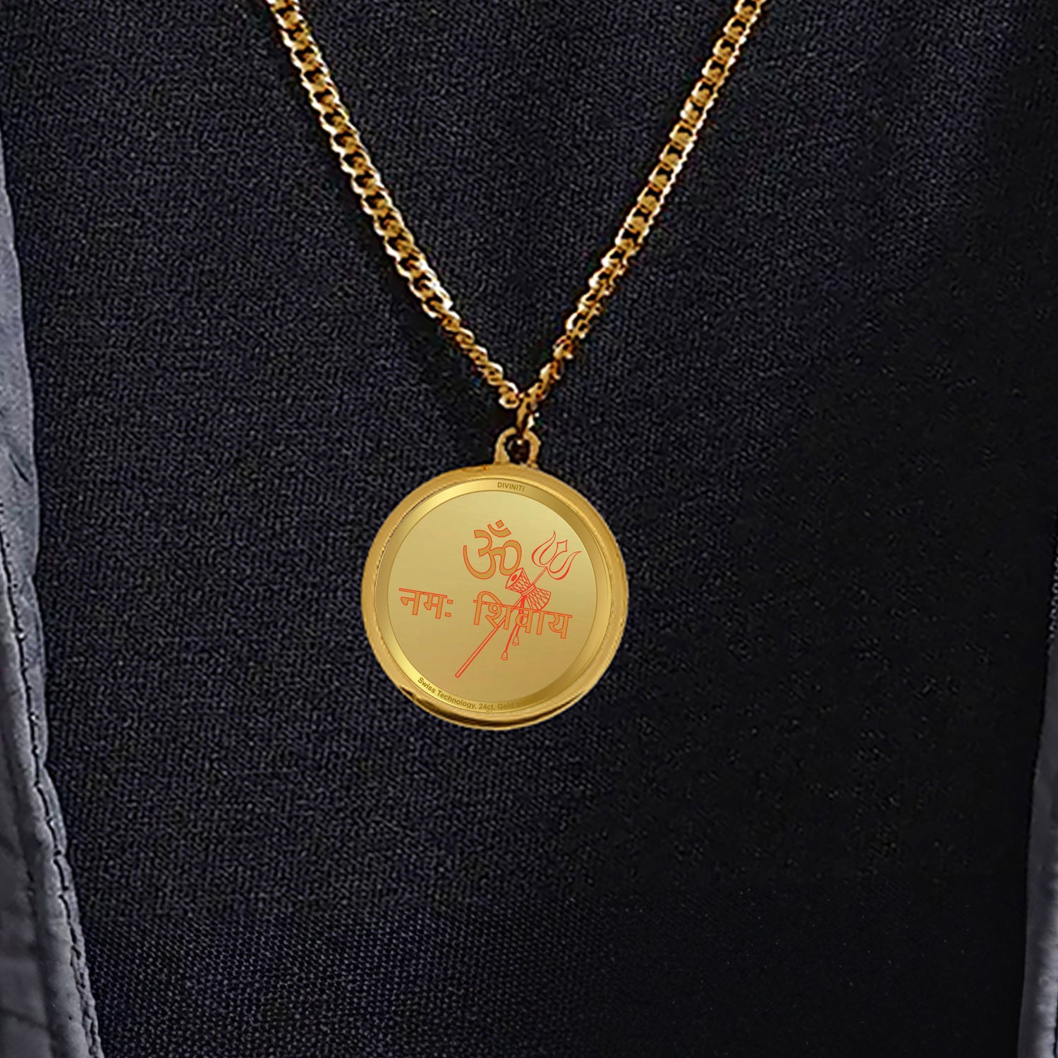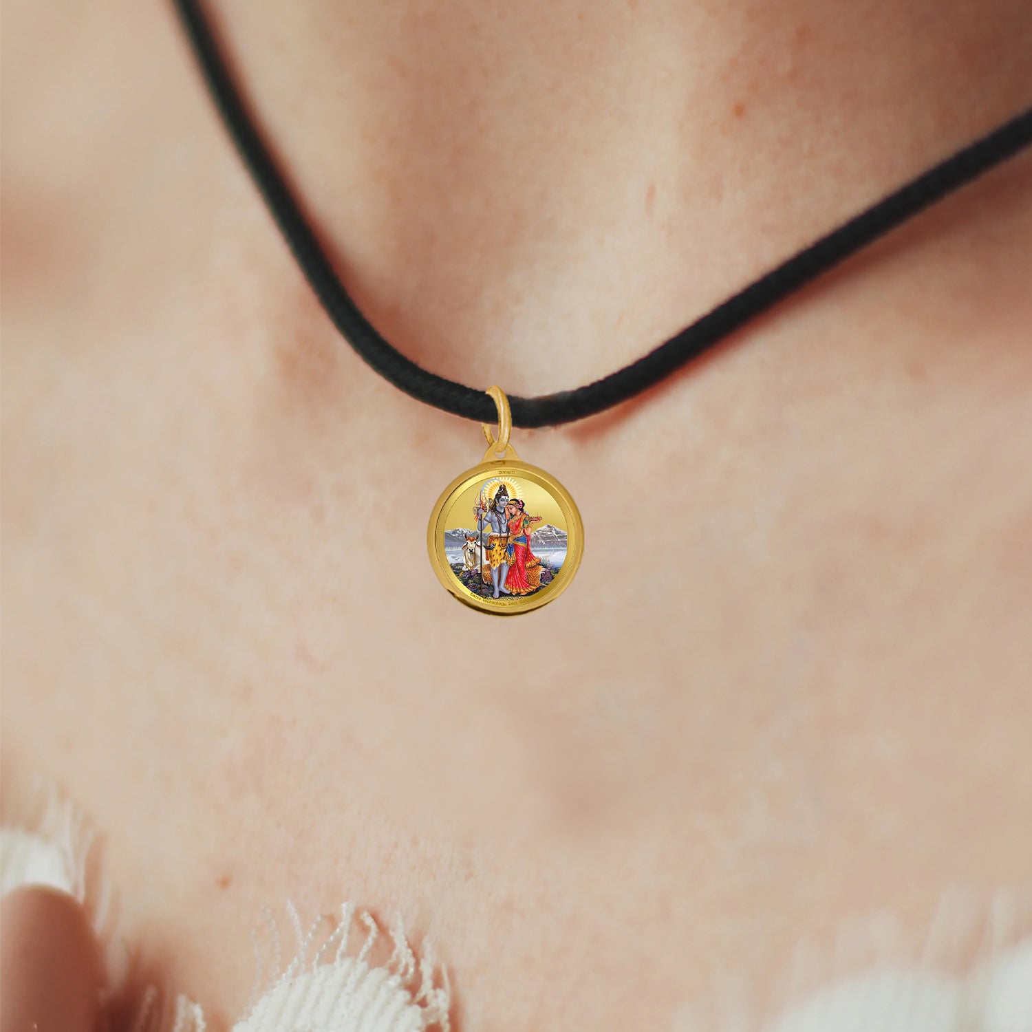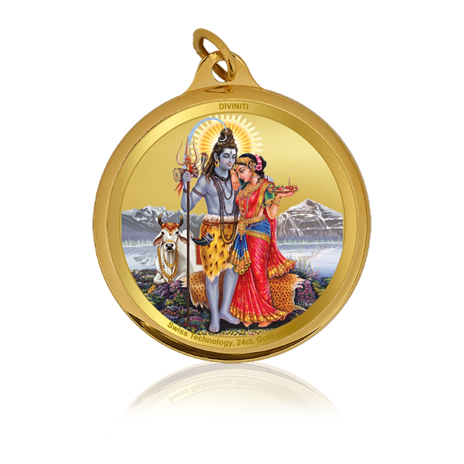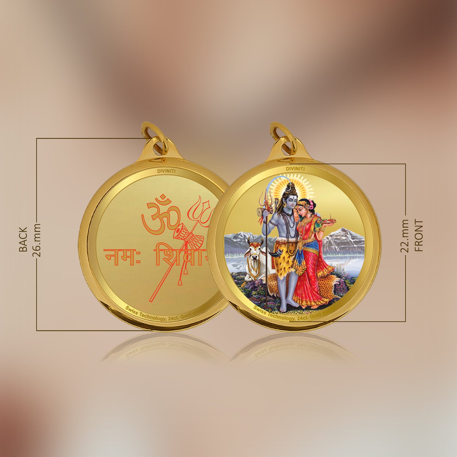 Diviniti 24K Gold Plated Shiva Parvati & Om Namah Shivay 22MM Double Sided Pendant For Men, Women & Kids