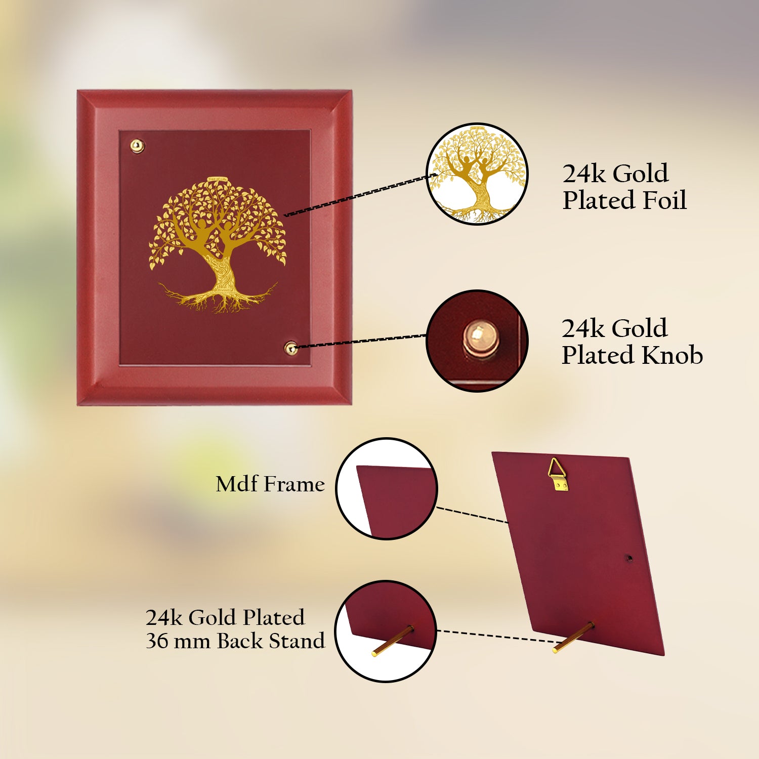 - Elegant Design: Features a sophisticated MDF frame enhanced with 24K gold-plated foil for a luxurious touch.