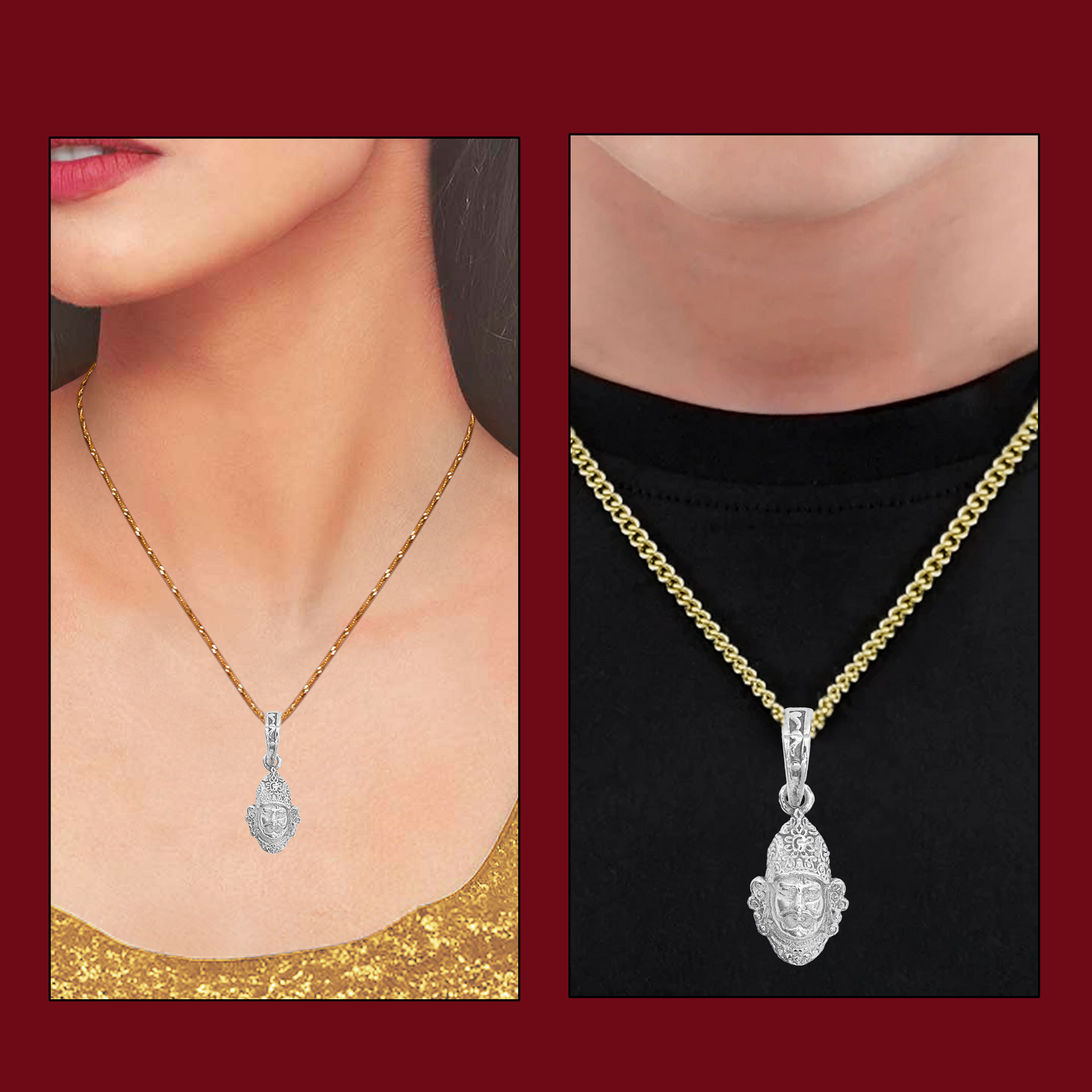 DIVINITI 925 Pure Silver Khatu Small Pendant, a beautifully crafted piece that embodies devotion and spirituality. This intricately designed pendant features a detailed representation of Khatu Shyam, a revered deity known for granting blessings and protection. Measuring 1.4x0.9 cm and weighing just 2 grams, it is lightweight and comfortable, making it ideal for everyday wear for men, women, and kids alike.