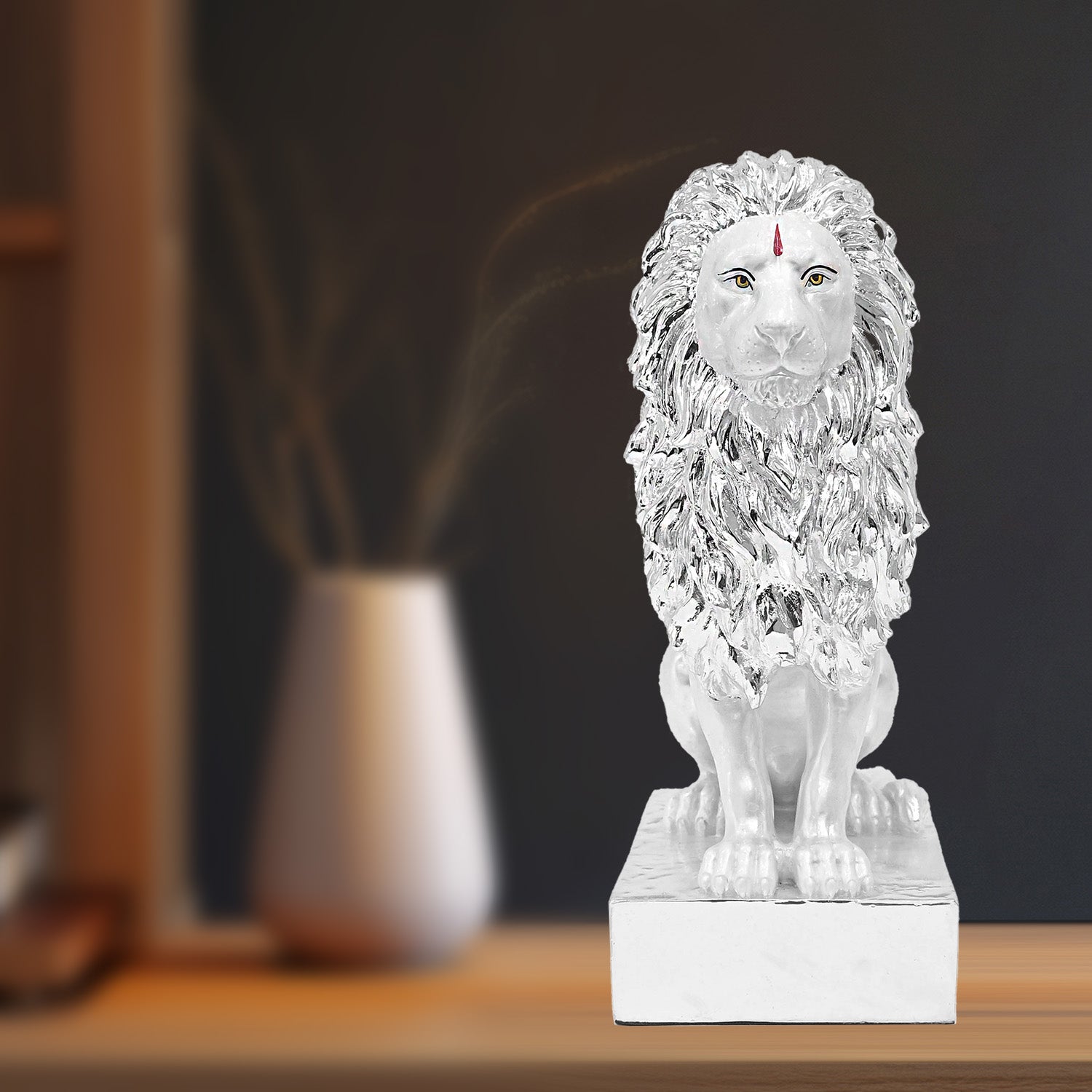 DIVINITI 999 Silver Plated Lion Idol Showpiece Statue, a magnificent symbol of strength and elegance. This beautifully crafted statue captures the majestic essence of the lion, making it a stunning addition to any home decor or office tabletop. The exquisite 999 silver plating enhances its allure, radiating a sense of nobility and power.