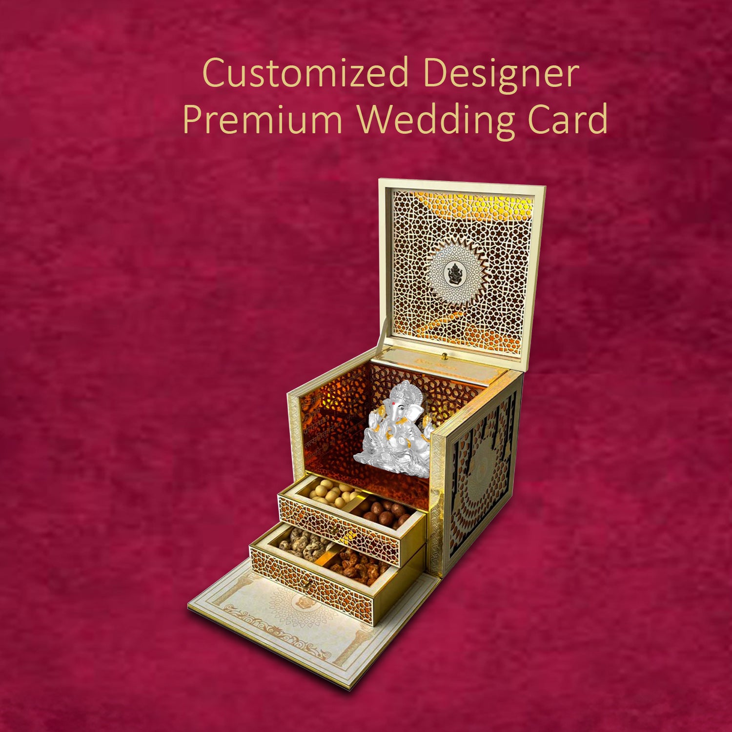 Diviniti Customized Designer Wedding Card Gift with 999 Silver Plated Ganesha Idol For Marriage Invitation