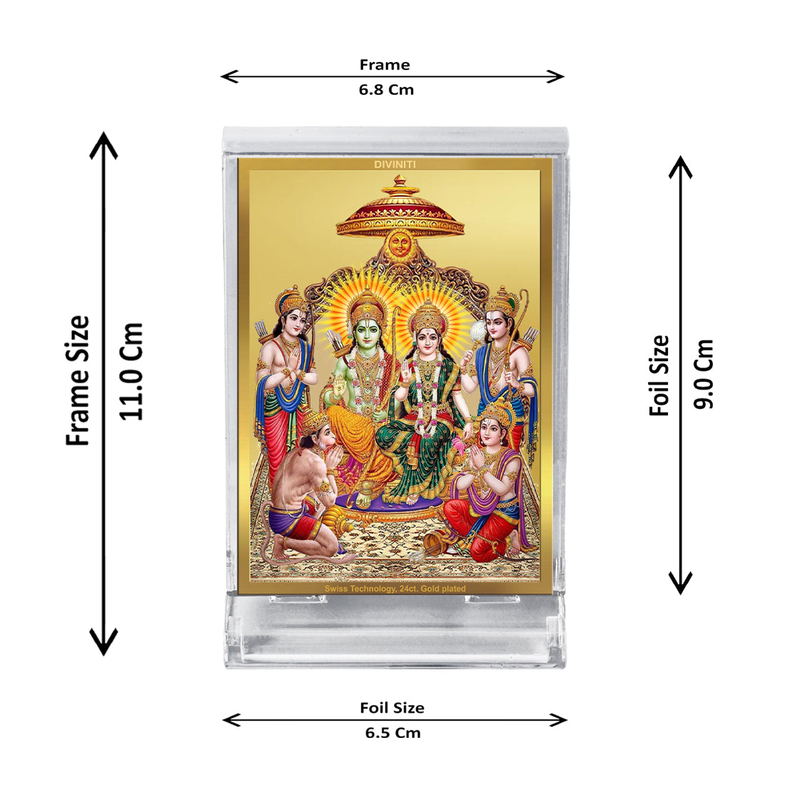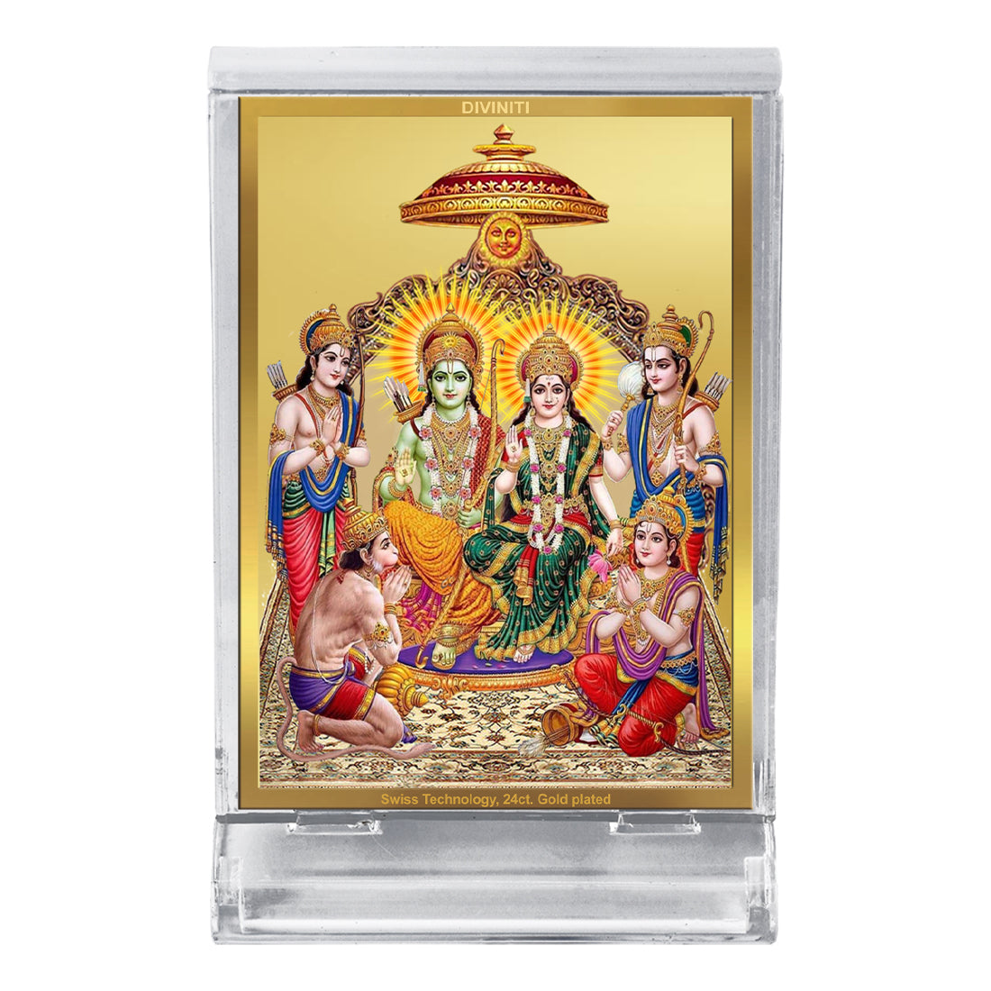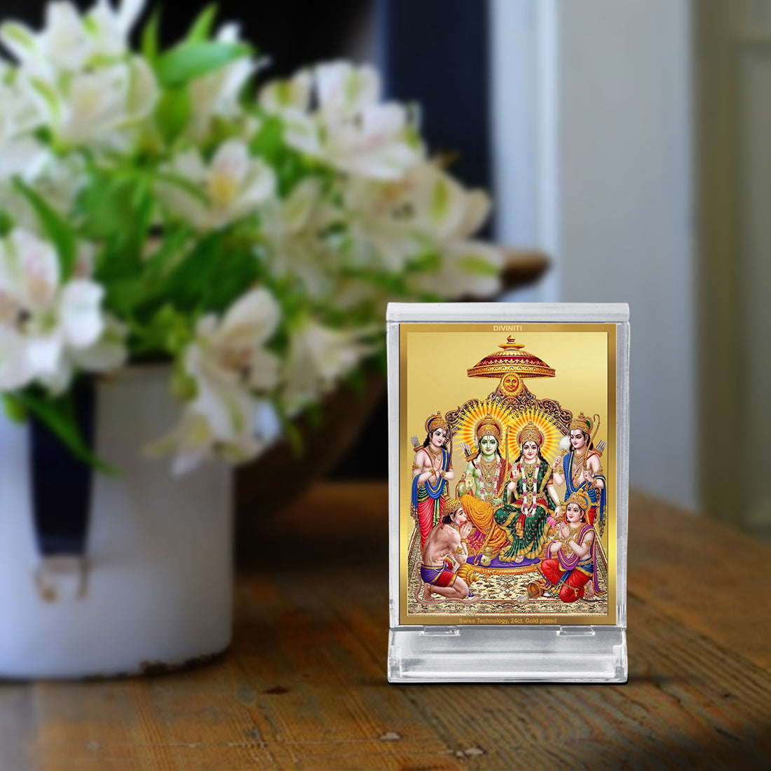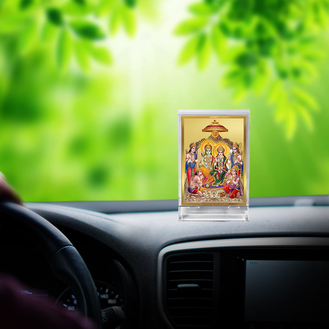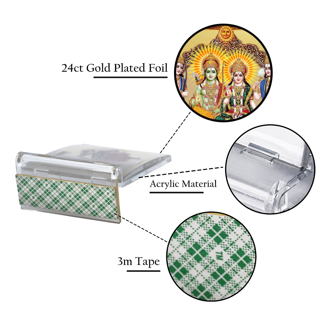 This Ram Darbar frame serves as an exquisite addition to your car dashboard, home, table, office, shop or showroom. You can also use it in your Puja Prayer room to create a serene and sacred atmosphere. Made from acrylic material and adorned with 24K gold-plated foil, this divine frame is crafted to withstand the test of time, ensuring long-lasting spark and durability.