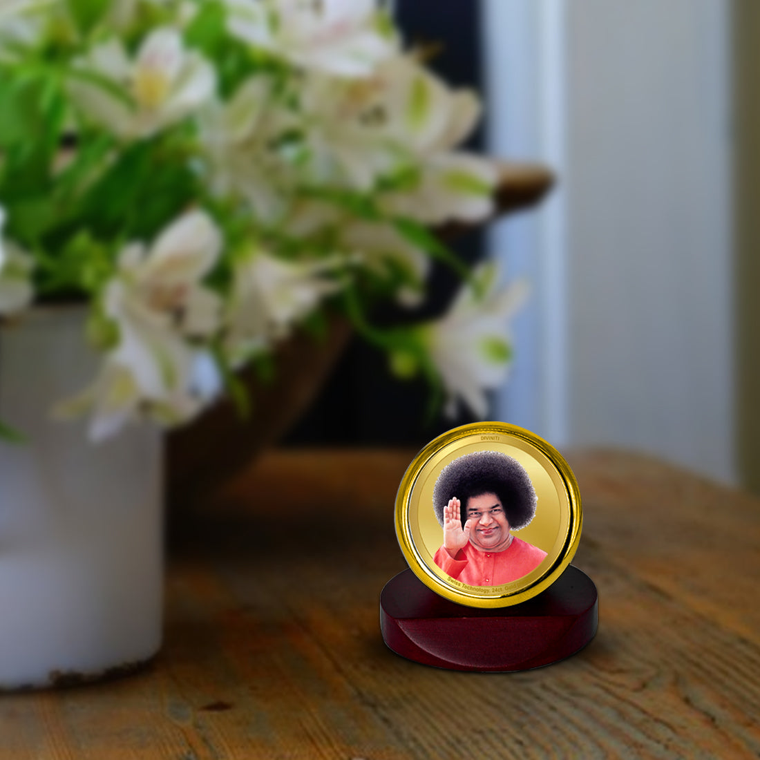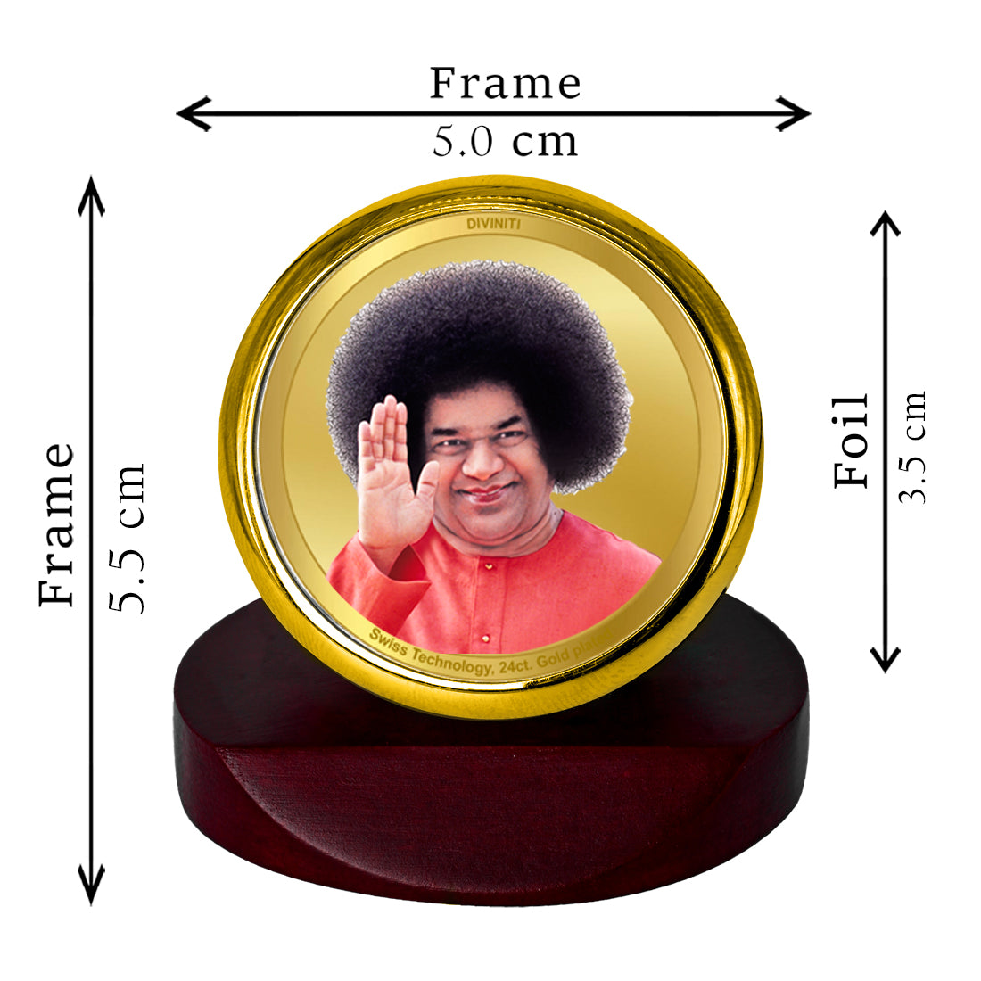 Diviniti 24K Gold Plated Sathya Sai Baba Photo Frame for Car Dashboard, Home Decor, Table Top, Puja Room Worship and Festival Gift MCF1CGOLD (5.5x5 CM)
