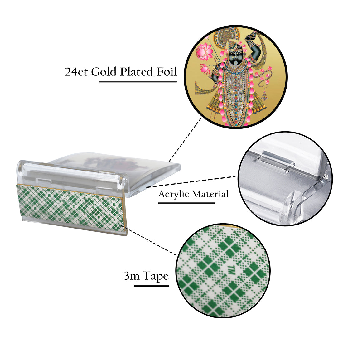 Crafted with meticulous attention to detail, this acrylic frame adds a sense of sophistication and tranquility to your home, office, or vehicle. The 24K gold plating creates a luxurious finish that elevates the design, making it not just a spiritual symbol but also a decorative accent that complements any décor style. Whether used to hold an image of a religious figure, deity, or personal photo, the frame serves as a constant reminder of faith, devotion, and the blessings that surround you.