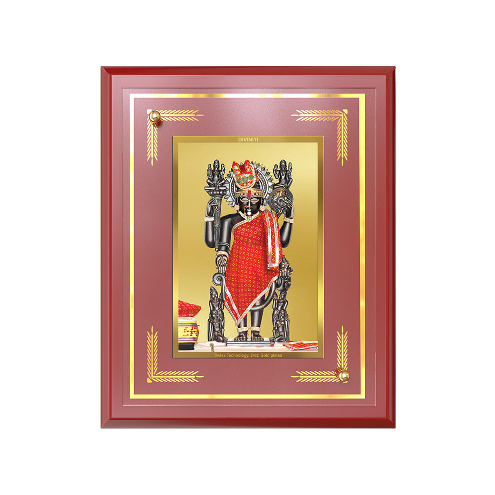 Beautiful Medium Density Fiberboard MDF wall and tabletop photo frame featuring 24K gold plated foil artwork perfect for temple, mandir, or spiritual spaces, adding both elegance and devotion.