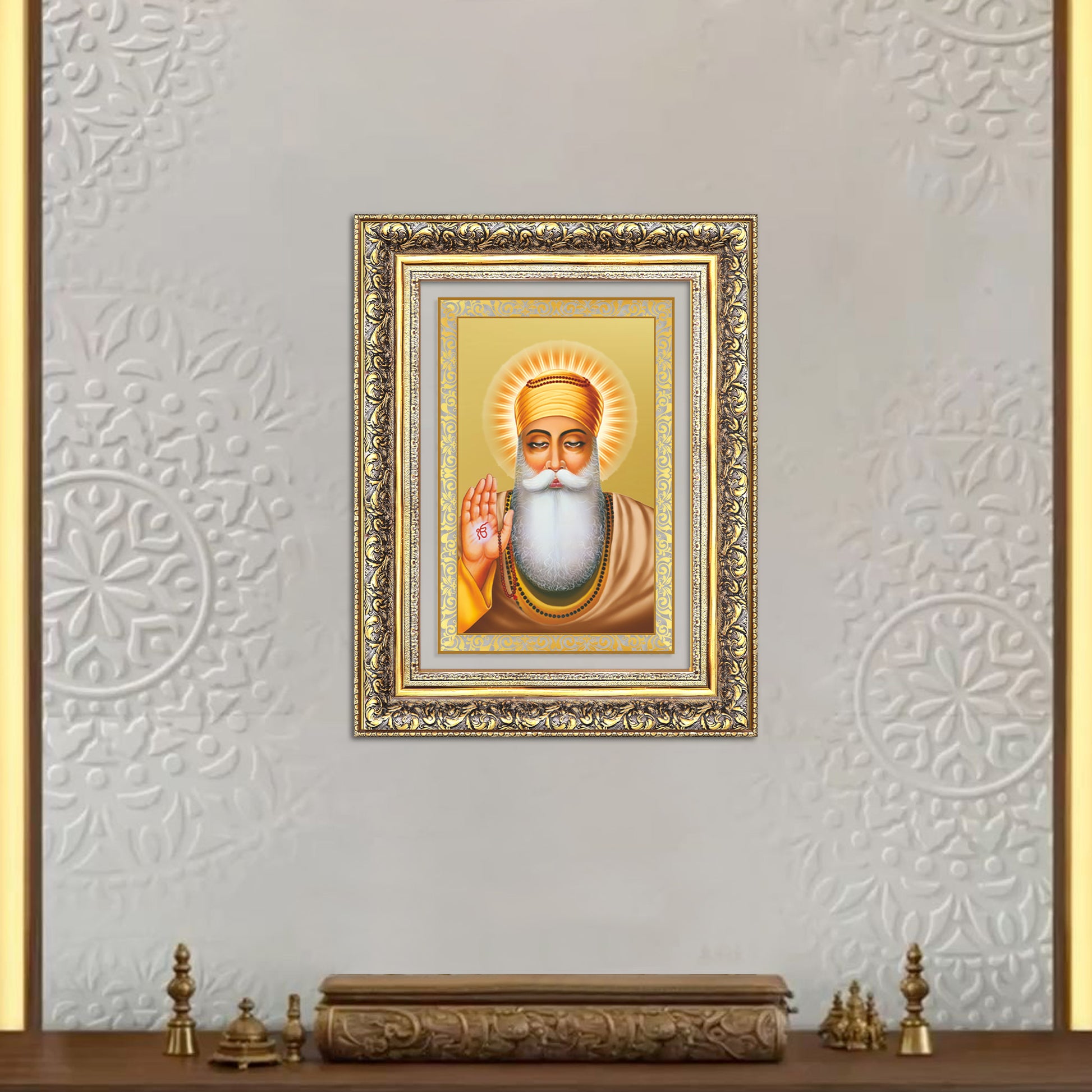 Guru Nanak Dev Ji | Divine Wall Mount Photo Frame in 24K Gold Plated Foil