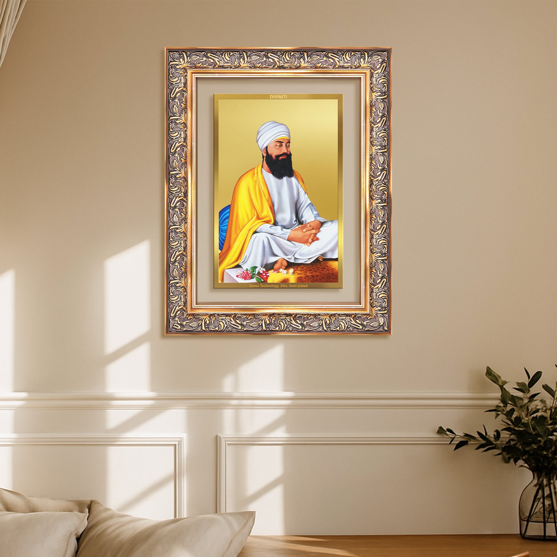 Guru Tegh Bahadar Sahib Ji | Divine Wall Mount Photo Frame in 24K Gold Plated Foil