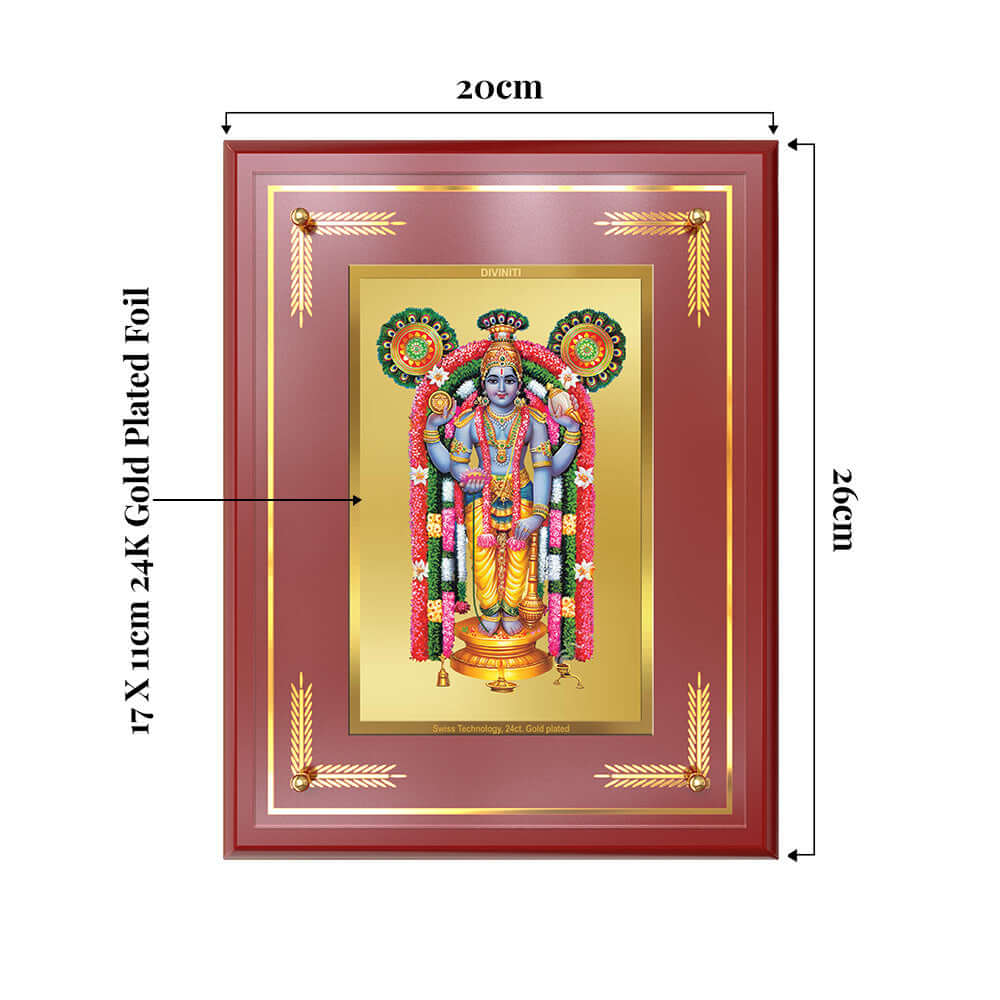 Bring home the sacred presence of Guruvayurappan, the divine child form of Lord Krishna worshipped at the holy Guruvayur Temple, with this exquisite wall and tabletop Photo Frame in 24K gold-plated foil. Adored as the embodiment of Lord Vishnu in his complete form, Guruvayurappan is revered for his healing grace, boundless compassion, and divine protection.