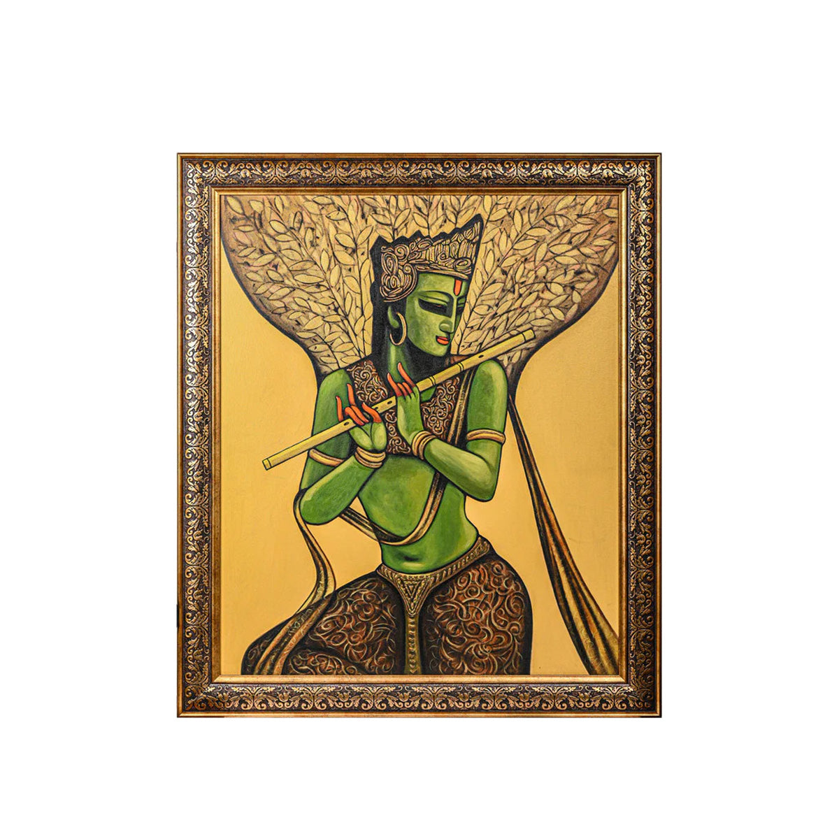 Handmade Krishna Playing Flute Painting| Wall Decoration Painting with Divine Illustration| Stunning & Durable Wall Art| A Perfect Gift Option For Special Occasions|